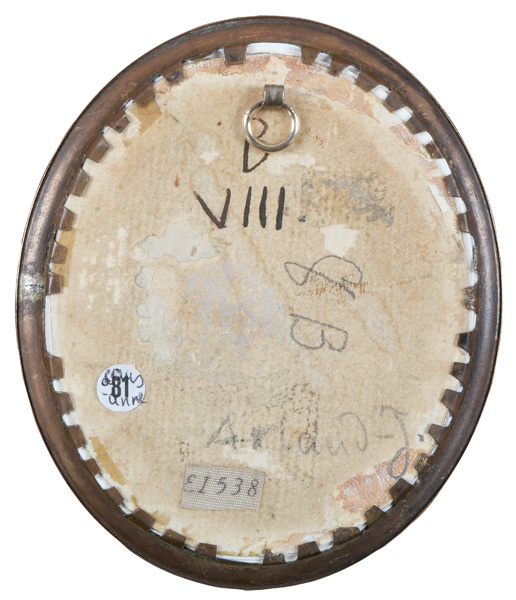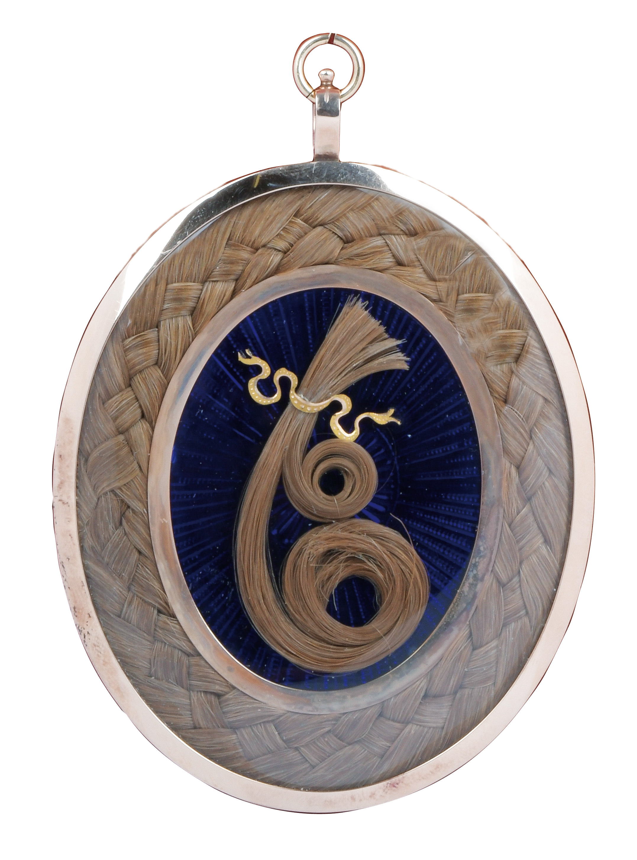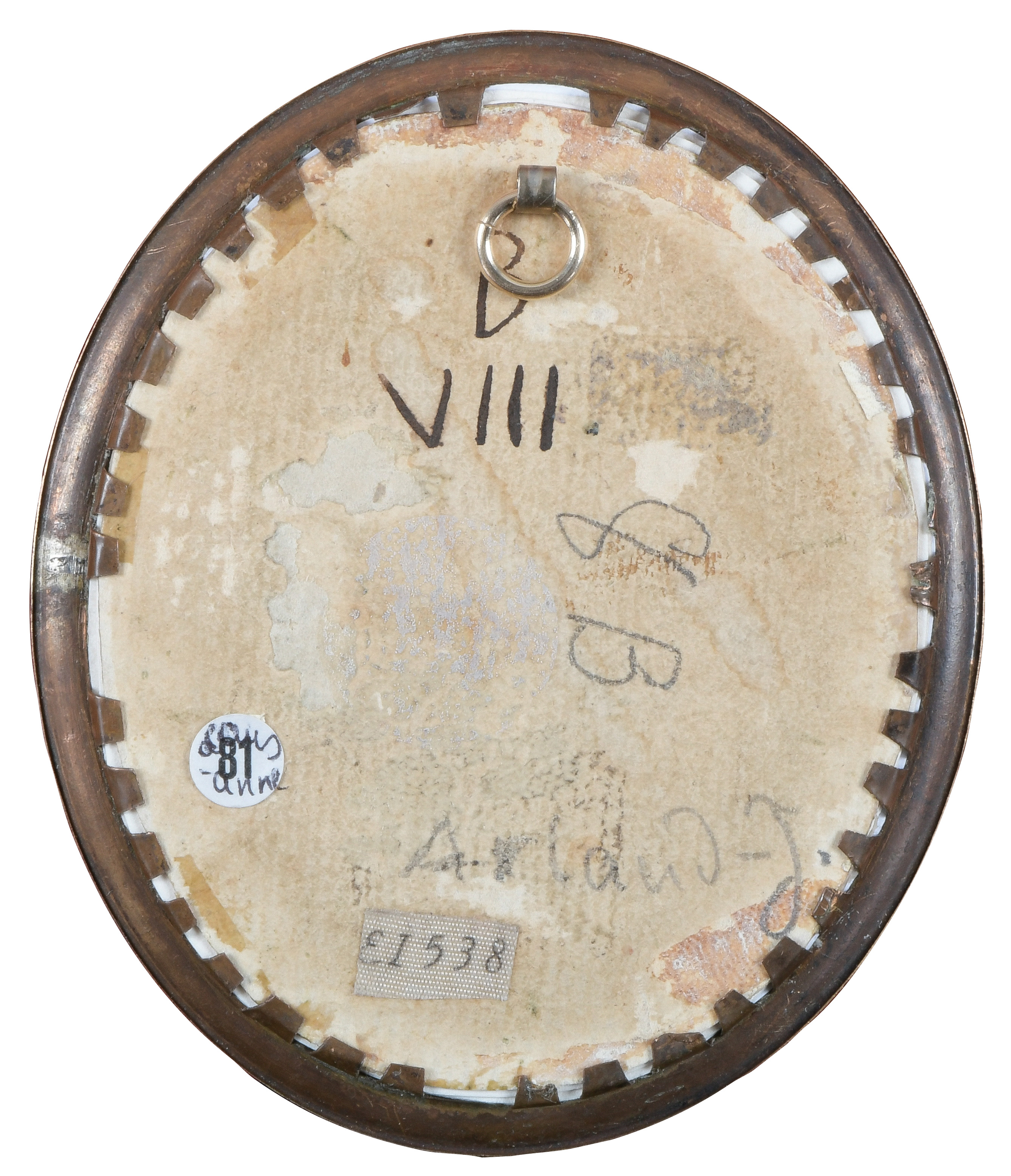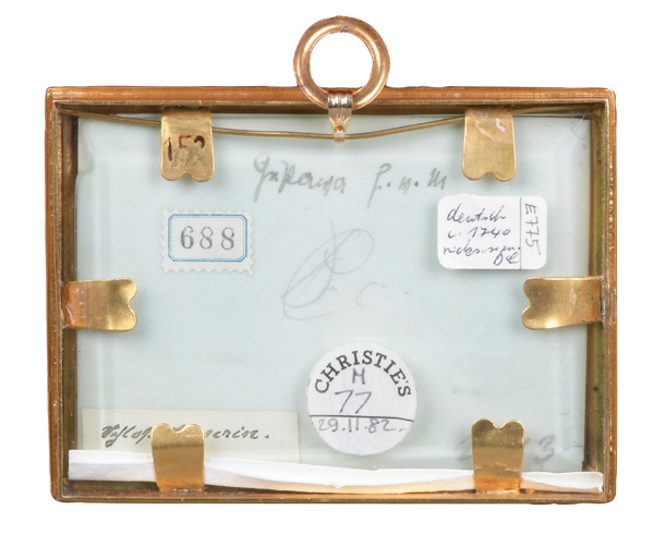 Porträt von Master Sparkes als Knabe. Bunt gemalt in Puderfarben und aquarelliert auf Elfenbeinplatte, hi./Gl. in aufwendigem 14 kt Gelbgoldrahmen, verso geflochtene Haararbeit und zwei Haarlocken mit Goldklammer in Schlangenform. Provenienz: Christie's, London 12. Nov. 1963 für GBP 12.000,00. Ausstellung: The Arts Council Gallery, Edinburg, „British Portrait Miniatures“, Edinburgh 1965, Nr. 262. Vgl. G. C. Williamson / H. L. D. Engleheart, „George Engleheart 1750-1829. Miniature Painter to George III“, London 1902, S. 113. Elfenbein-Gutachten und EU-Verkaufsgenehmigung liegen vor und können für EUR 150,00 erworben werden.
