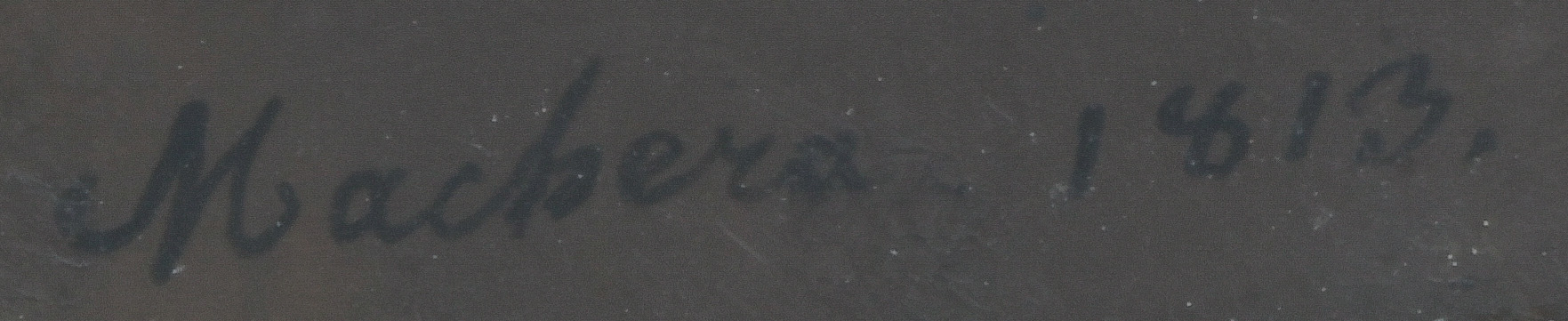 Porträt eines Herren mit Kinnbart. Öl/Holz, hi./Gl. gerahmt in schlichtem rechteckigem Holzrahmen mit profiliertem Innenfeld.