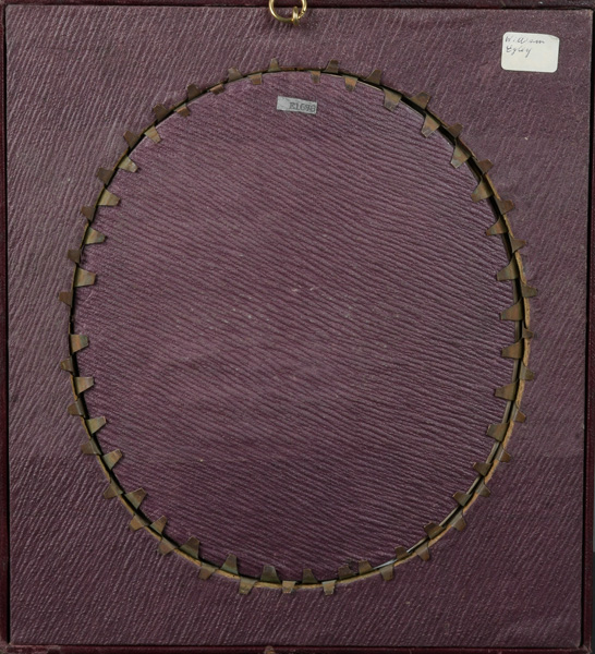 Porträt einer Dame. Bunt gemalt in Puderfarben und aquarelliert auf Elfenbeinplatte, re./u./sign., hi./Gl. in aufwendig reliefiertem, durchbrochenem Messingrahmen. Provenienz: Antiquitäten Gertrud Rudigier, München 1981. Elfenbein-Gutachten und EU-Verkaufsgenehmigung liegen vor und können für EUR 150,00 erworben werden.