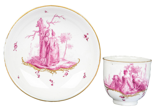 | Versicherungswert: € 1.800,- o.L. Katalog-Nr: 377 Becher und Unterschale.Frankenthal 1767