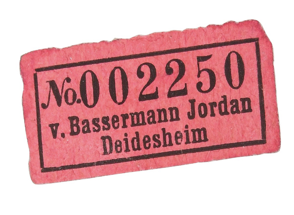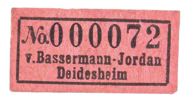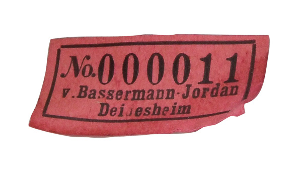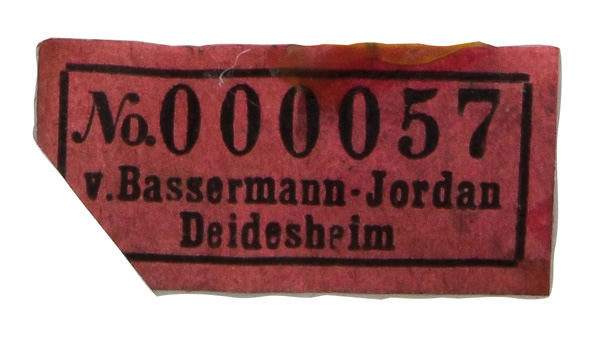 | Passend zur Vornummer. REM, Sammlungs-No. 000050. Zugehörig zu einer Sammlung von neun Tellern. Diese Teller waren bei der Familie Bassermann-Jordan zu Festlichkeiten regelmäßig in Gebrauch. Je rund gemuldet mit steigender Fahne und umlaufend gewelltem, kapuzinerbraun staffiertem Lippenrand. Sparsam purpurn bemalt mit indianischen Streublumen. Porzellan, verso unterglasurblaue, bekrönte, ligierte CT-Marke. Zuerst werden die Teller einzeln aufgerufen. Im Nachgang werden die Einzelbeträge addiert und das höhere Gesamtgebot erhält den Zuschlag.