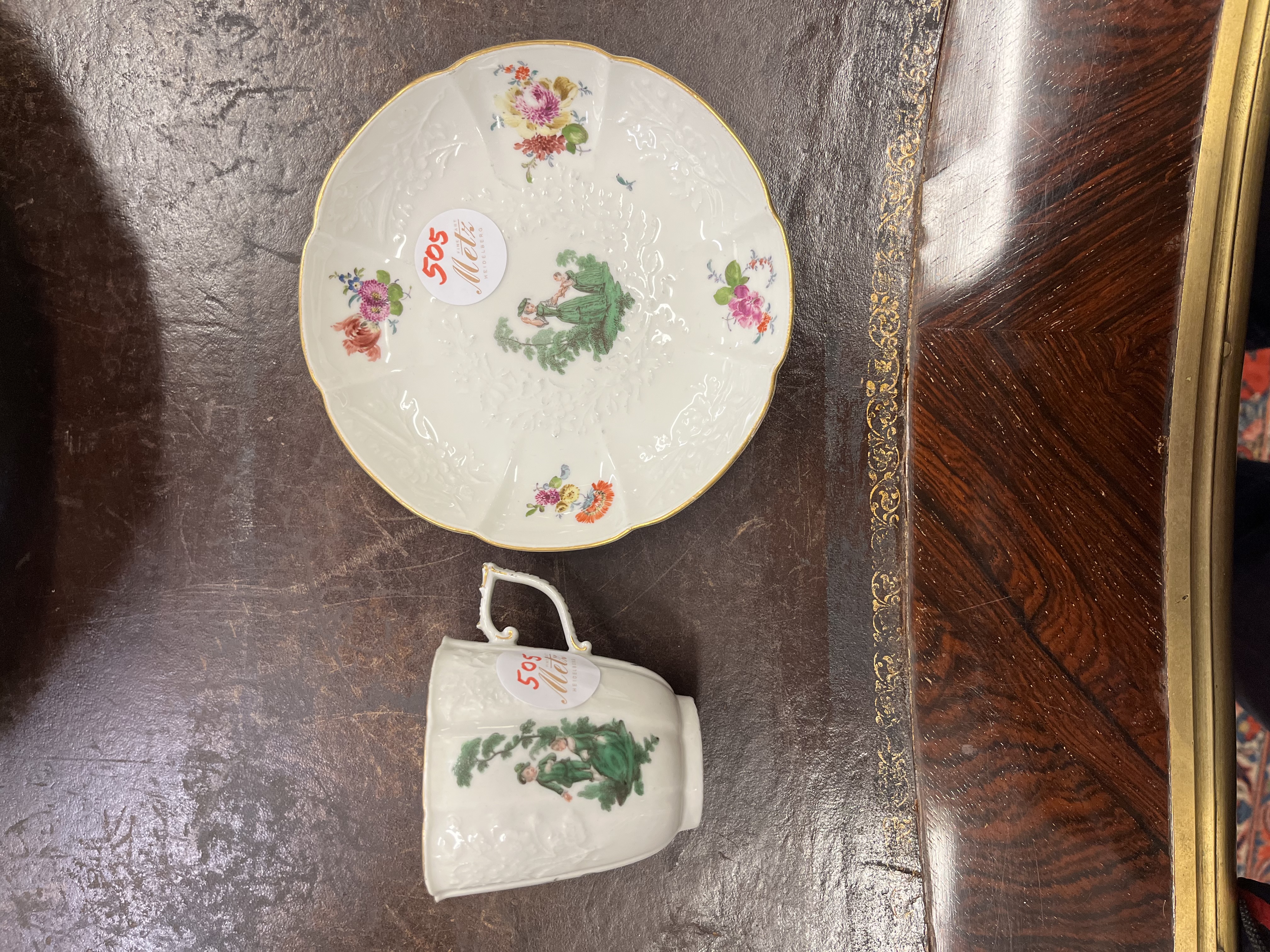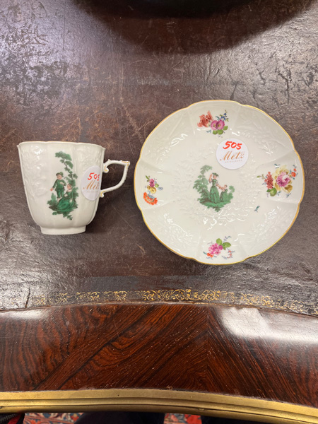 € 1.500,- Katalog-Nr: 505 Bechertasse mit Unterschale aus dem grünen WatteauserviceMeissen 1750-63