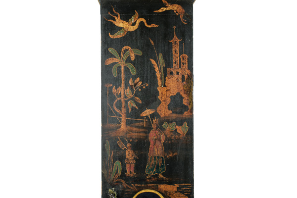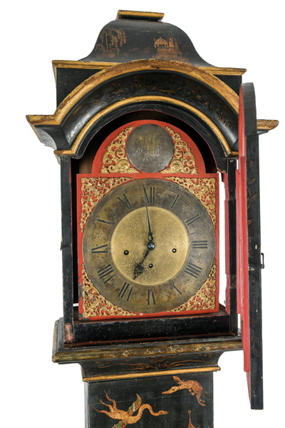 Versicherungswert: € 350,- o.L. Katalog-Nr: 490 Hochbedeutende, chinoise gelackte, höfische Standuhr