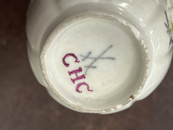 Beide Teile bunt floral bemalt und mit Goldrand. Porzellan, am Boden unterglasurblaue, bekrönte, ligierte CT-Marke, REM Sammlungs-No. 002147.
