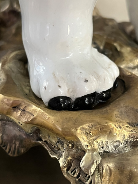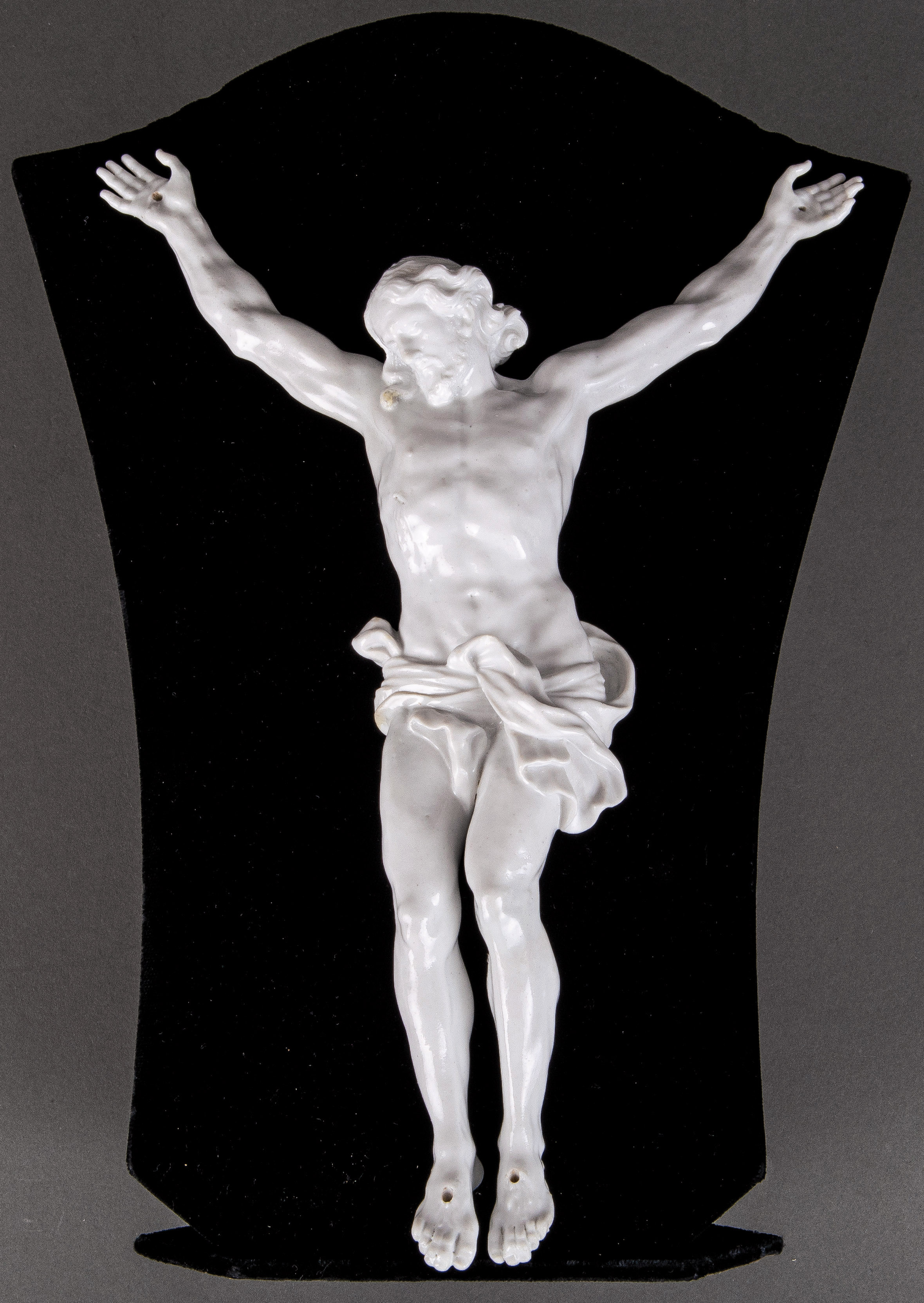 | Meisterhaft im Viernageltypus modelliert. Porzellan, weiß glasiert, ohne Marke. Modell wohl von J. P. Melchior. Im Auftrag gefertigt für denKurfürsten Friedrich Carl Joseph. Dazu neuzeitliche schwarz bezogene Halterung. Vgl. K. Röder / M. Oppenheim, „Das Höchster Porzellan“, Mainz 1925, Nr. 359.