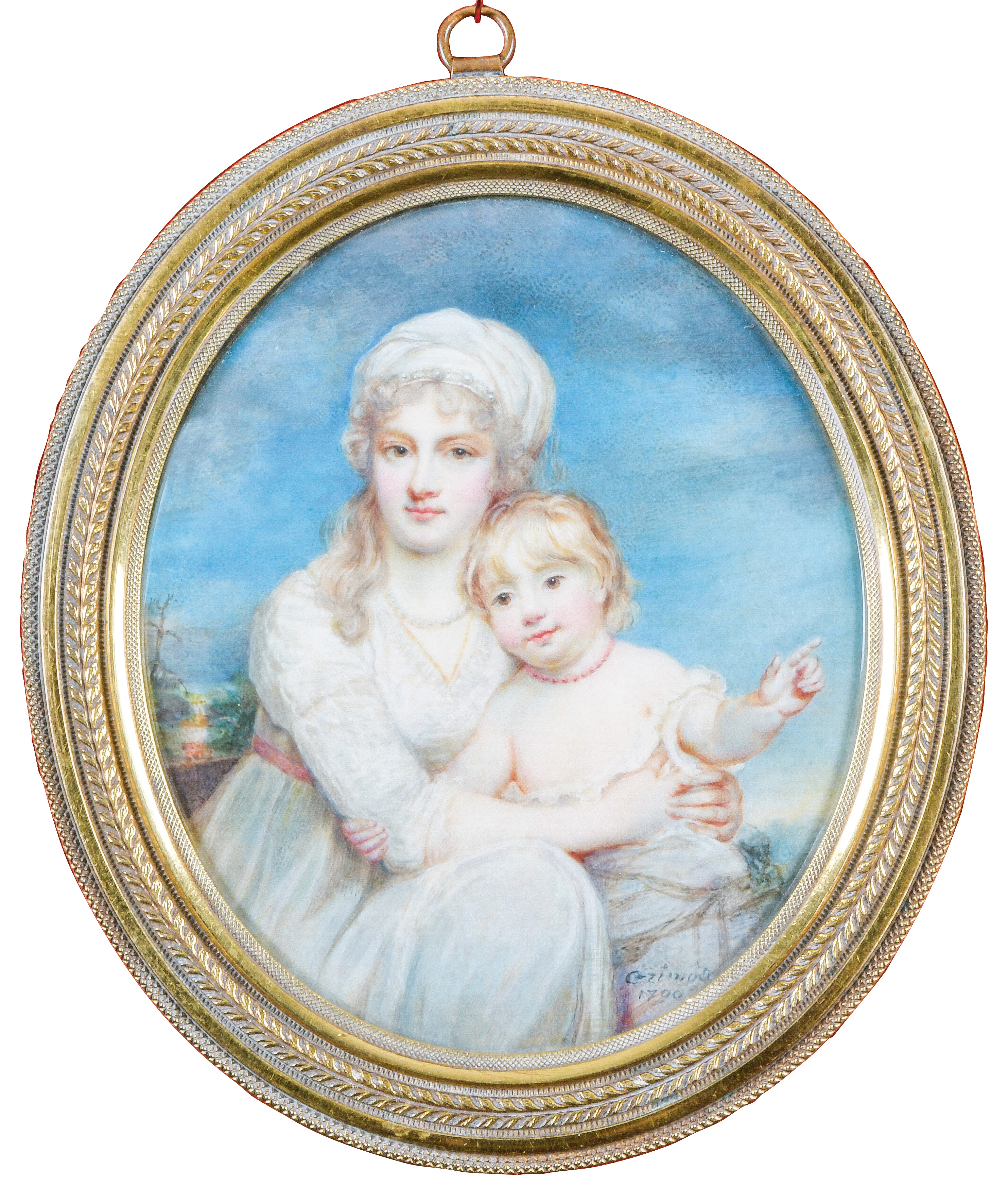 (1751-1830) Porträt von Sophia Hawkins Whitshed mit ihrem Sohn James. Bunt gemalt in Puderfarben und aquarelliert auf Elfenbeinplatte, re./u./sign./dat. 1798, hi./Gl. in ziseliertem und reliefiertem Messingrahmen. Provenienz: Bonhams, London 22. April 2004, GBP 24.000,00. The Albion Collection. Anmerkungen: Das vorliegende Los basiert auf einem Porträt von James Northcote, das in seinem Geschäftsbuch von 1797 als „Portrait half length of Mrs Hawkins Whitshed and her child £31.10 not taken“ verzeichnet ist. Dieses Gemälde wurde 1798 in der Royal Academy in London ausgestellt und ging in den Besitz von Milnes, dem Schwager der Porträtierten, über. Das Prototyp-Porträt zeigt James, der seine Hand nach einem Schmetterling ausstreckt (siehe J. Simon, „The Account Book of James Northcote“, Walpole Society, 1995-96, S. 67, Nr. 327). Informationen über die Kommission des vorliegenden Loses finden sich in einem Brief Grimaldis vom 13. Juni 1797 aus London an Mrs. Hawkin Whitshed, Tunbridge Wells, in dem es heißt: „Madame... Ihr Ölgemälde ist noch bei mir, und von ihm habe ich solche Änderungen an Ihrer Miniatur vorgenommen, die Ähnlichkeit ist, glaube ich, gleich dem Ölgemälde, und in einigen Tagen werde ich die Änderungen an dem Kinde fertig haben, wenn ich vorschlage, Mr. Northcoats [sic] Meinung darüber einzuholen, dessen Zustimmung viel Gewicht für die Ihre haben muss“. Gräfin Sophia Henrietta Bentinck, Tochter des Grafen Johann Albrecht Bentinck (1737-1775) und der Reiniera van Tuyll van Serooskerken (1744-1792). Sie heiratete im Dezember 1791 Admiral Sir James Hawkins of Whitshed Bt. (1762-1849). Sie hatten drei Töchter, Sophie (1792-1846), Charlotte (geb. 1793) und Renira (1798-1889), und zwei Söhne, James (ca. 1795-1813) und St. Vincent (1802-1807), der seinem Vater als zweiter Baronet folgte. Die Familie Hawkins-Whitshed scheint James Northcote für ihre Familienporträts bevorzugt zu haben, da dreizehn weitere Porträts unter seiner Schirmherrschaft verzeichnet sind (eines, das Charlotte im Alter von etwa 34 Jahren zeigt, weist eine große Ähnlichkeit mit dem Gesicht ihrer Mutter im vorliegenden Los auf). Elfenbein-Gutachten und EU-Verkaufsgenehmigung liegen vor und können für EUR 150,00 erworben werden. 10,3 x 8,7 / 13,5 x 11 cm € 5.000,- - Katalog-Nr: 103Jean Jaques Thérésa de Lusse