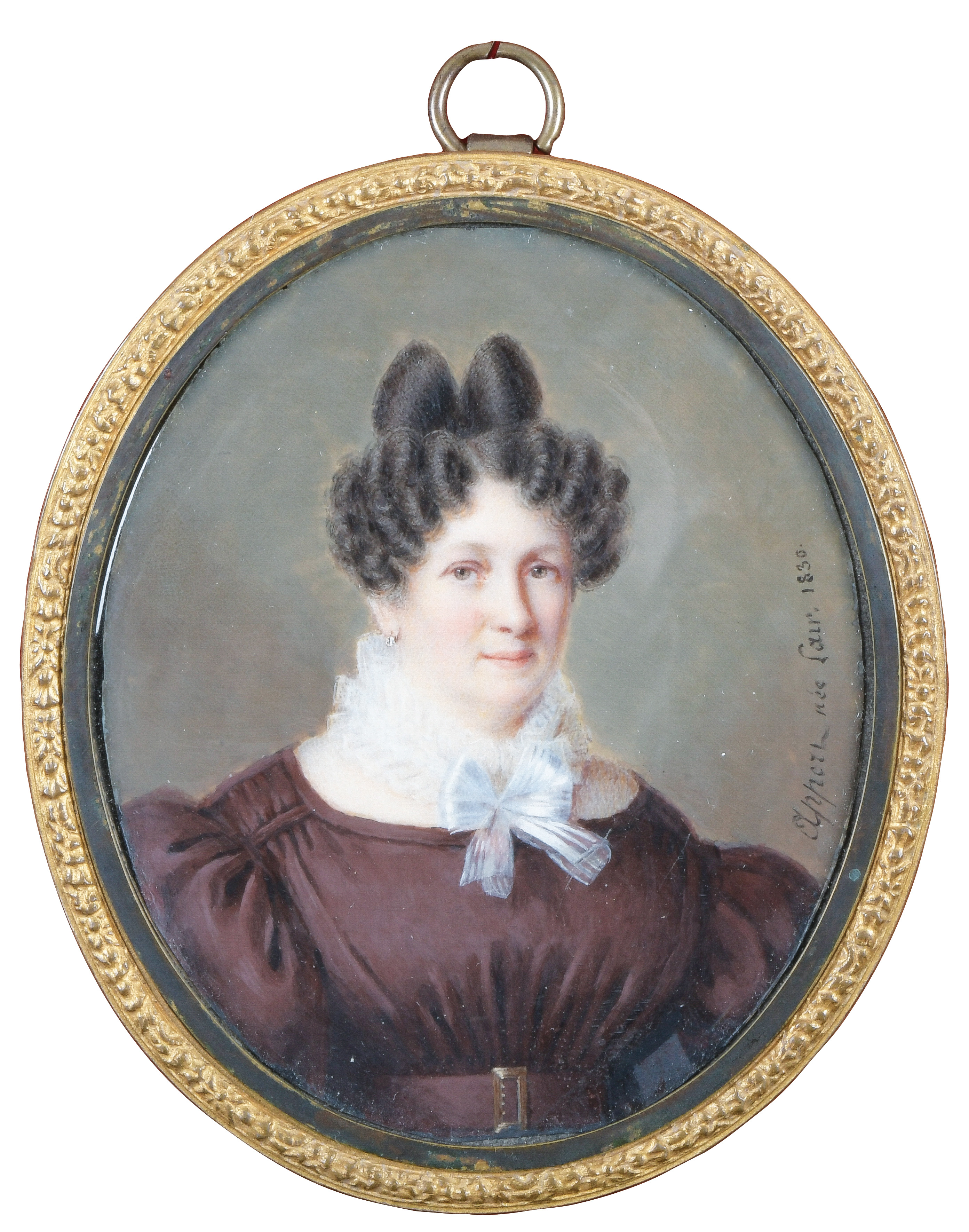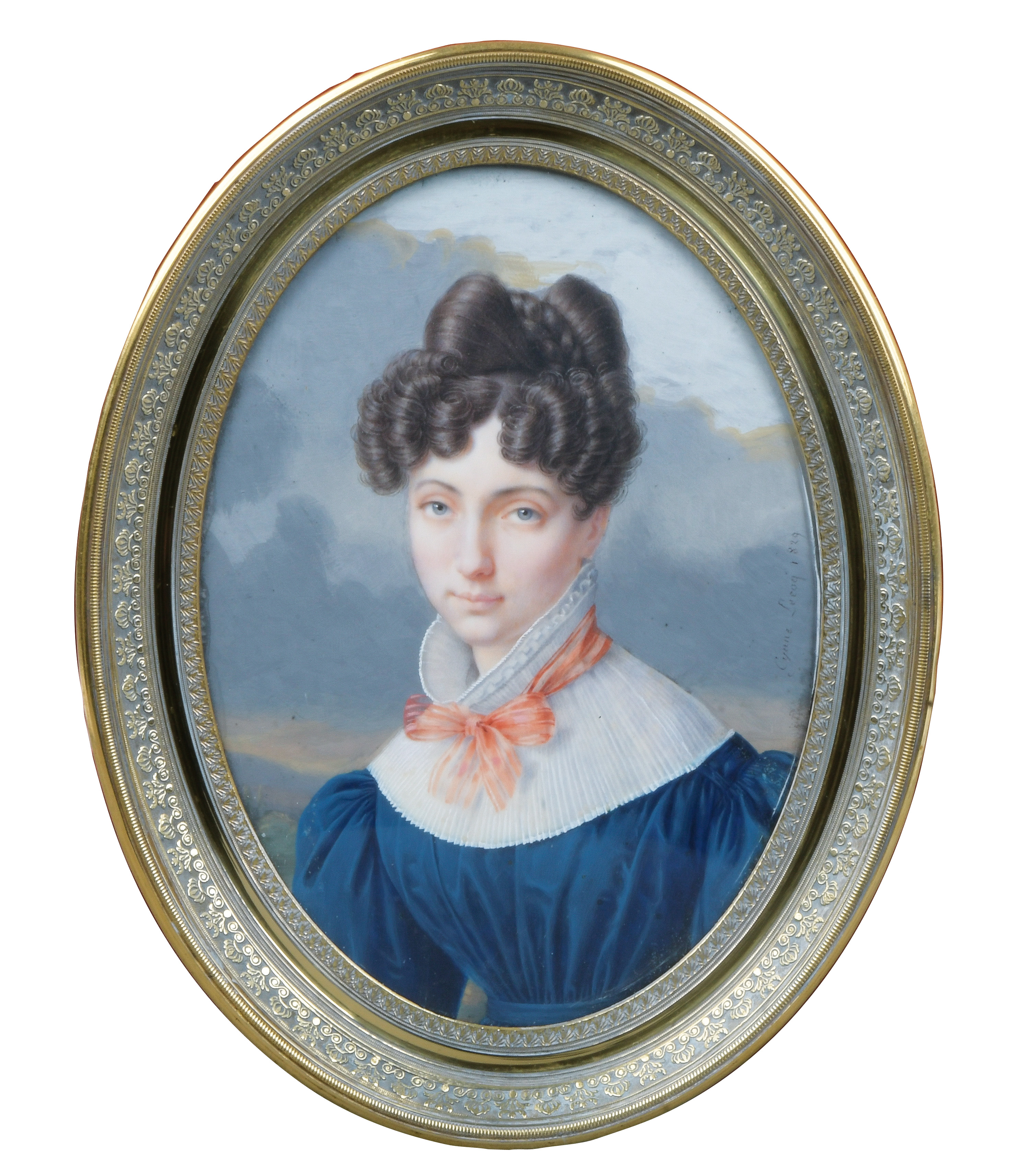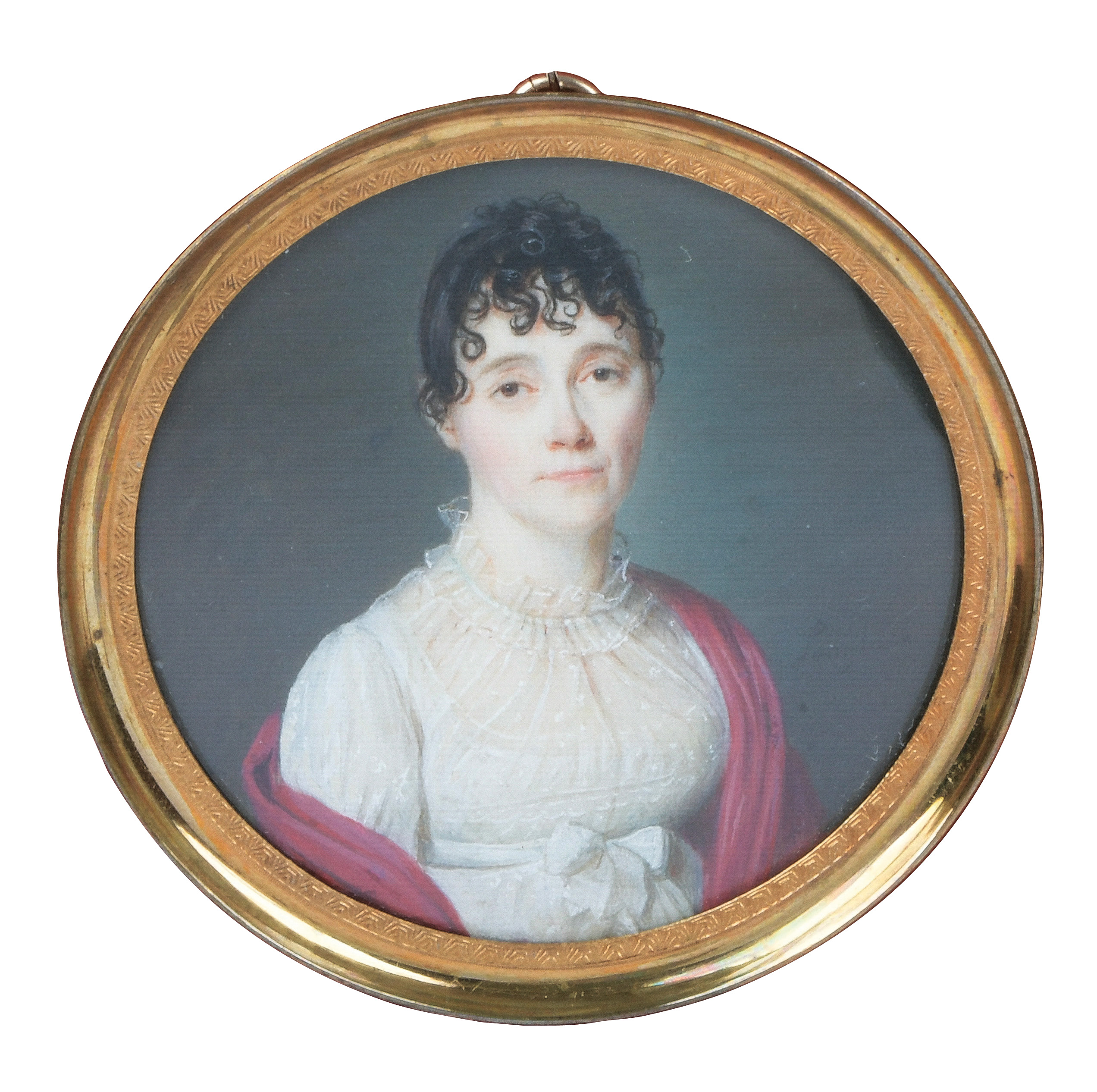 (1799-1895) Porträt einer Dame. Bunt gemalt in Puderfarben und aquarelliert auf Elfenbeinplatte, re./mittig/sign./dat. 1829, hi./Gl. in zeitgenössischem, reliefiertem, vergoldetem Messingrahmen. Provenienz: Sotheby's, Genf 6. Mai 1981. Elfenbein-Gutachten und EU-Verkaufsgenehmigung liegen vor und können für EUR 150,00 erworben werden. 13,5 x 9,8 / 17,3 x 13,3 cm € 500,- - Katalog-Nr: 110Jérome Langlois