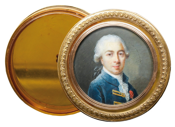 (1743/44-1808) attrib. Porträt eines Herren. Bunt gemalt in Puderfarben und aquarelliert auf Elfenbeinplatte, hi./Gl. mit 18 kt Goldmontur, eingelassen in den Deckel einer runden Dose aus poliertem Schildpatt. Provenienz: Sotheby's, Genf 6. Mai 1981. Elfenbein-Gutachten und EU-Verkaufsgenehmigung liegen vor und können für EUR 150,00 erworben werden. H=2,8 cm, D=4,2 / 6,2 cm € 2.400,- - Katalog-Nr: 117Christian Friedrich Zincke