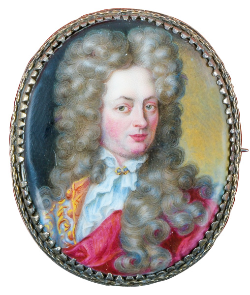 (1680-1720) attrib. Porträt eines Edelmannes, wohl Johann Wilhelm von der Pfalz (1658-1716). Bunt gemalt in Emaille auf Kupferplatte, gerahmt in Silberfassung. Provenienz: Kunsthandel Edwin Bucher, Trogen 1980. 4,2 x 3,4 cm € 1.200,- - Katalog-Nr: 119Arenius Olof
