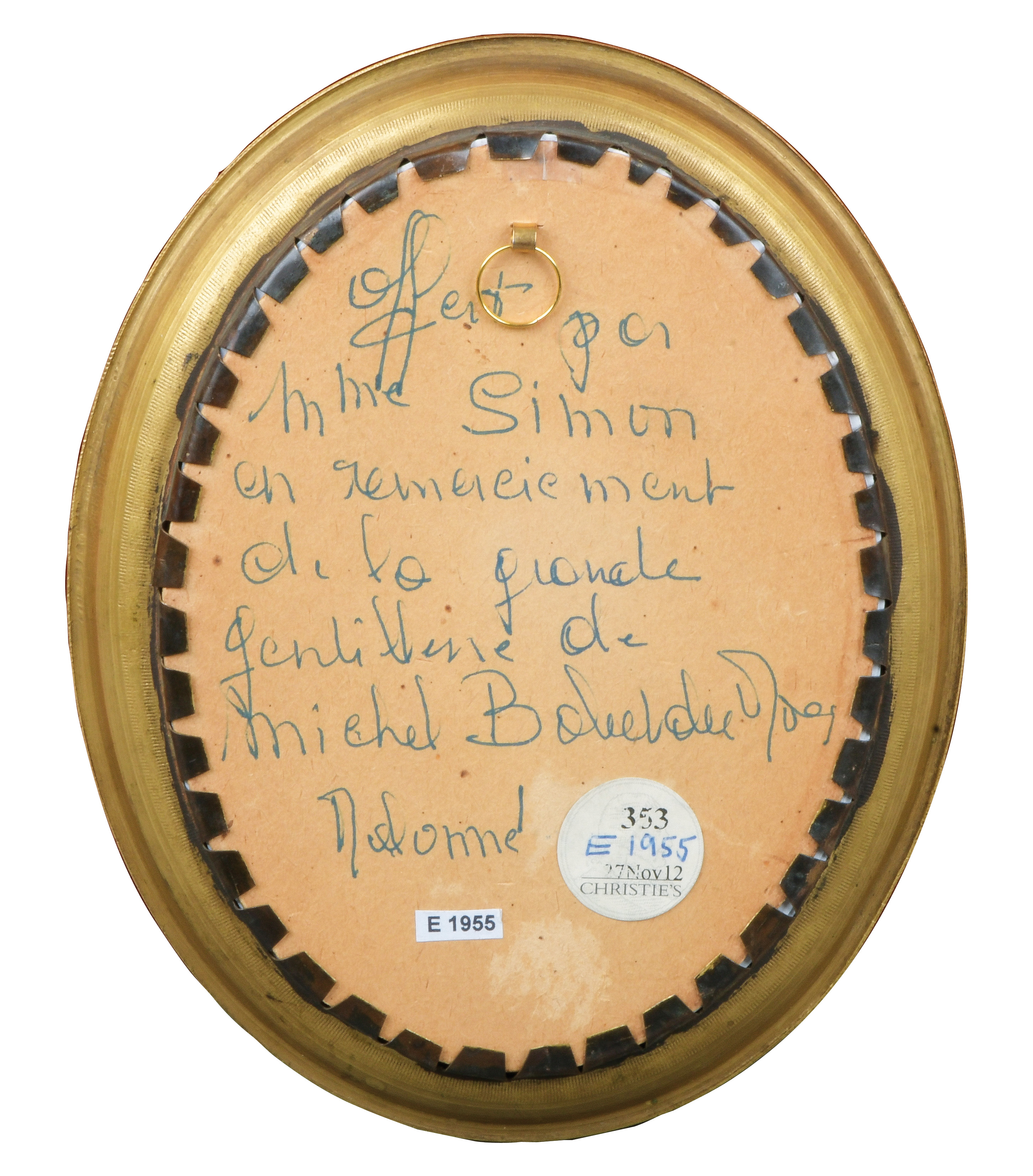 des 19. Jhs. Porträt eines Knaben mit Hund. Bunt gemalt in Puderfarben und aquarelliert auf Elfenbeinplatte, hi./Gl. in aufwendig graviertem und ziseliertem Rahmen. Provenienz: Christie's, London 28. Nov. 2012. Elfenbein-Gutachten und EU-Verkaufsgenehmigung liegen vor und können für EUR 150,00 erworben werden. 12 x 8,9 / 14,7 x 11,8 cm € 1.400,- - Katalog-Nr: 131François Theodore Rochard