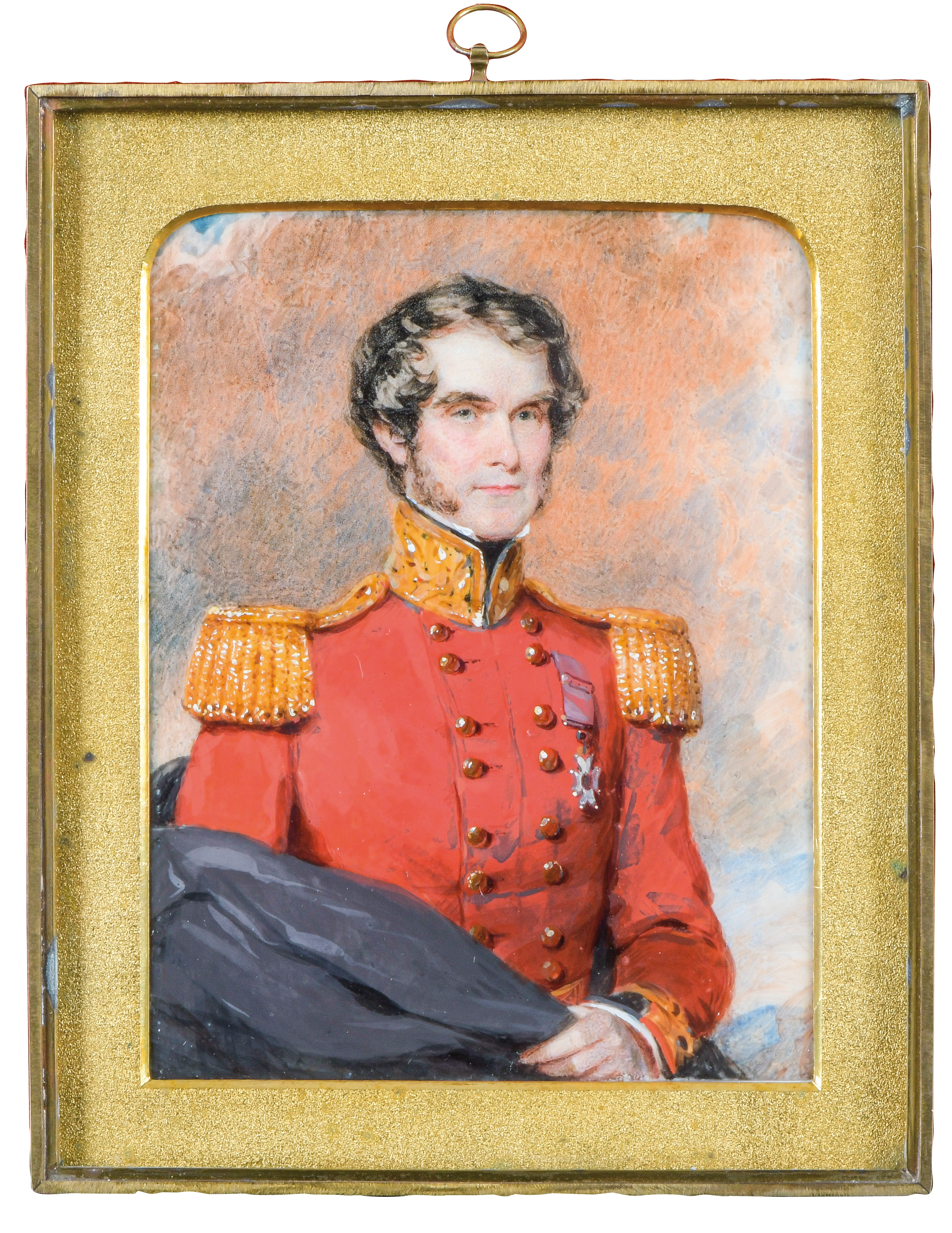 (1798-1858) Porträt von Generalmajor Edward Frederick (1784-1866). Bunt gemalt in Puderfarben und aquarelliert auf Elfenbeinplatte, re./o./sign./dat. 1842, mit Passepartout hi./Gl. in Bronzerahmen. Provenienz: Christie's, London 23. März 1982. Elfenbein-Gutachten und EU-Verkaufsgenehmigung liegen vor und können für EUR 150,00 erworben werden. 13,2 x 9,7 /16,7 x 13,6 cm € 1.000,- - Katalog-Nr: 132Karl von Saar