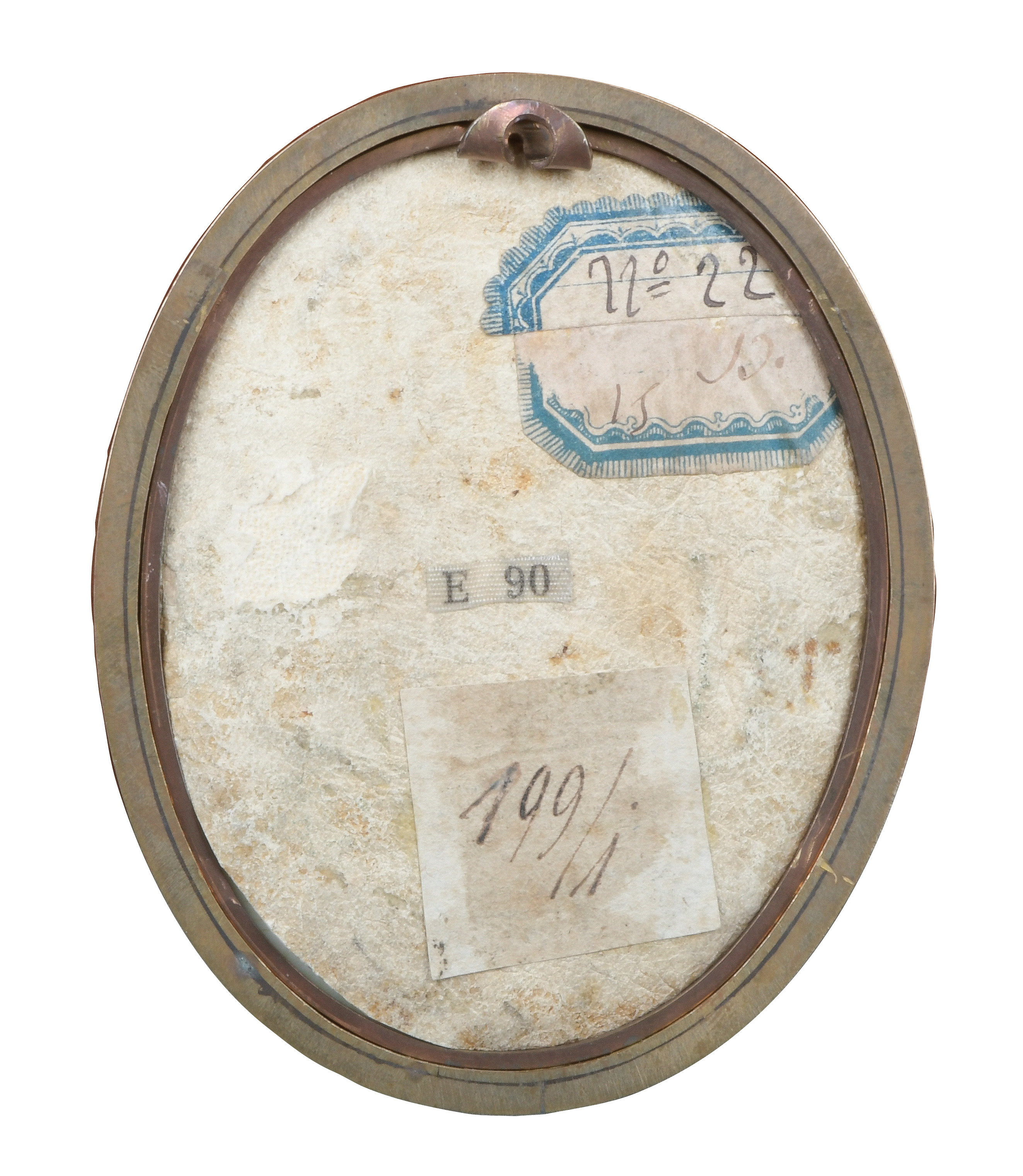 des 19. Jhs. Porträt eines Marinekadetten. Bunt gemalt in Puderfarben und aquarelliert auf Elfenbeinplatte, mit Passepartout hi./Gl. in schlichtem, goldfarbenem Rahmen. Provenienz: Christie's, London 28. Okt. 1980. Elfenbein-Gutachten und EU-Verkaufsgenehmigung liegen vor und können für EUR 150,00 erworben werden. 9,7 x 7,9 / 12,7 x 10,9 cm € 400,- - Katalog-Nr: 127Englischer Miniaturist