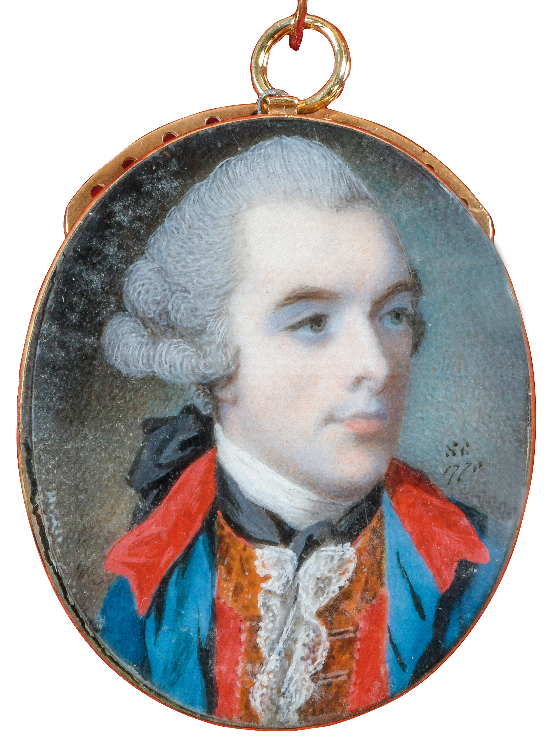 (1734-1818) Porträt eines Edelmannes. Bunt gemalt in Puderfarben und aquarelliert auf Elfenbeinplatte, re./mittig/sign./dat. 1778, hi./Gl. in 14 kt Goldrahmen mit -rückseite. Provenienz: Sotheby's, London 20. Juli 1981. Elfenbein-Gutachten und EU-Verkaufsgenehmigung liegen vor und können für EUR 150,00 erworben werden. 3,5 x 2,8 / 3,7 x 3,2 cm € 1.000,- - Katalog-Nr: 138Samuel Cotes