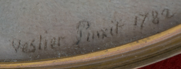 (1740-1824) Porträt der Madame de Montesson (1738-1806). Bunt gemalt in Puderfarben und aquarelliert auf Elfenbeinplatte, re./mittig/sign./dat. 1782, hi./Gl. in schmalem, goldfarbenem Rahmen. Provenienz: Christie's, London 28. Nov. 2012 für GBP 26.000,00. Das Gegenstück befindet sich im Nationalmuseum von Stockholm. Elfenbein-Gutachten und EU-Verkaufsgenehmigung liegen vor und können für EUR 150,00 erworben werden. 8 x 6,5 / 8,5 x 7 cm € 4.500,- - Katalog-Nr: 136Thomas Emanuel Peter