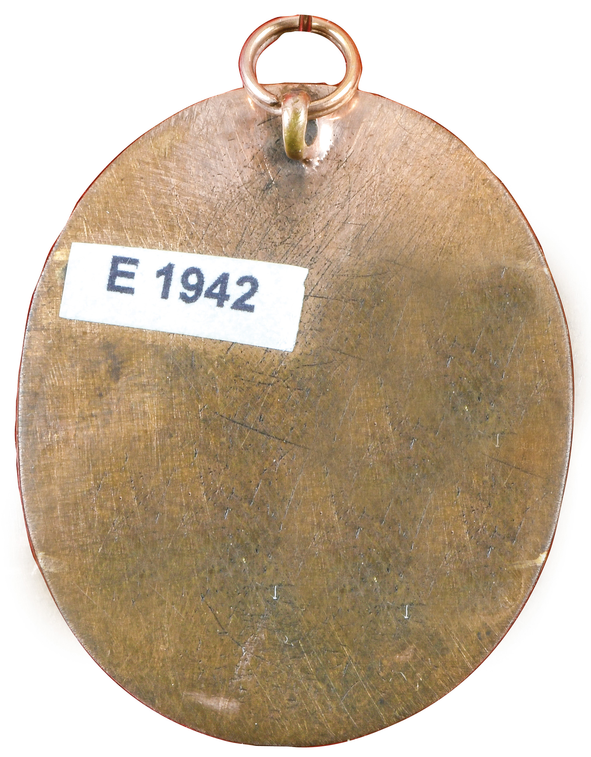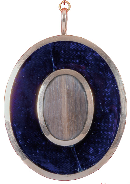 Porträt einer Dame. Bunt gemalt in Puderfarben und aquarelliert auf Elfenbeinplatte, hi./Gl. in Goldrahmen, verso teilw. emailliert und mit Haararbeit hi./Gl. (Email gesprungen). Provenienz: Antiquitäten Gertrud Rudigier, München 1983. Elfenbein-Gutachten und EU-Verkaufsgenehmigung liegen vor und können für EUR 150,00 erworben werden.