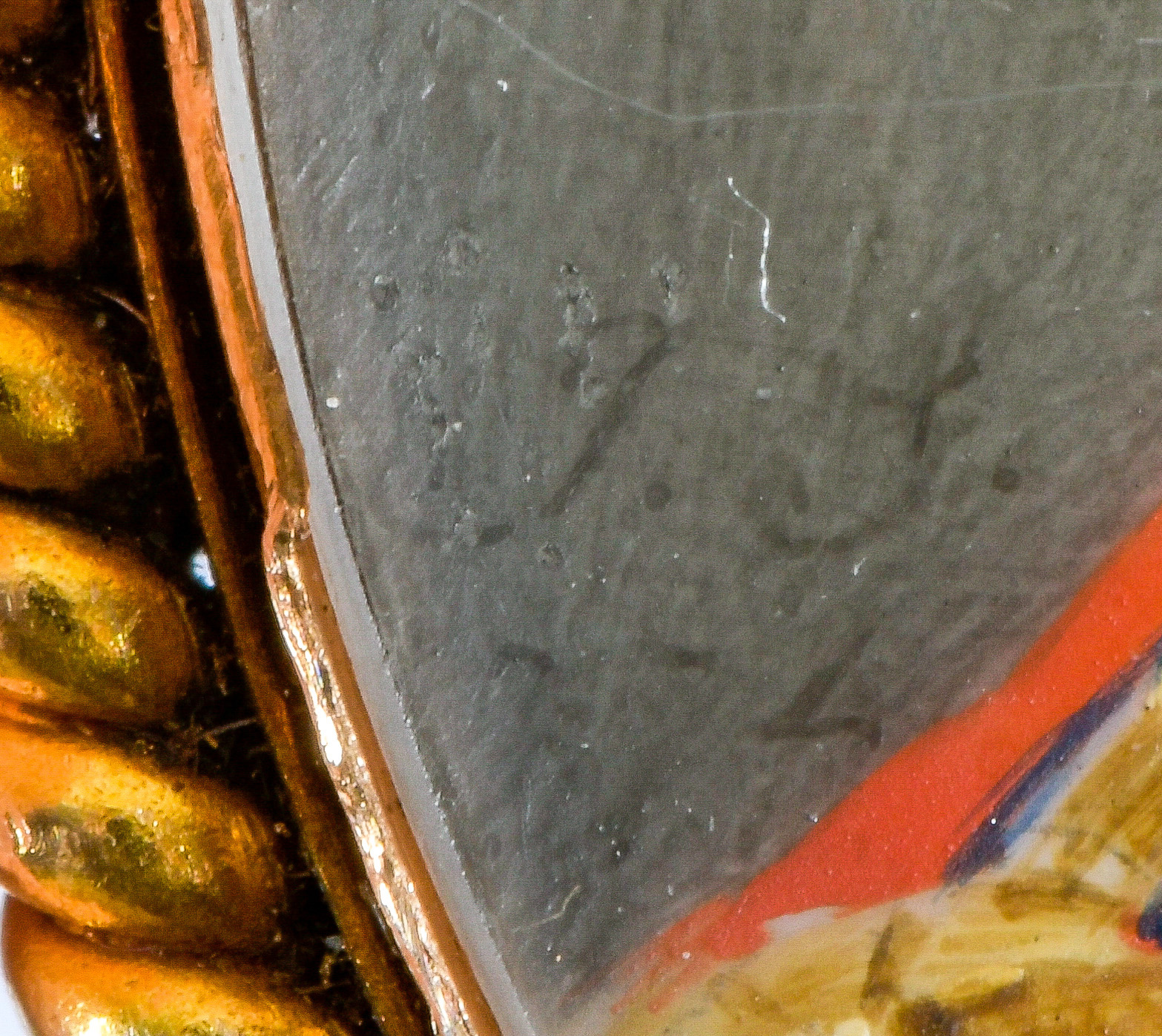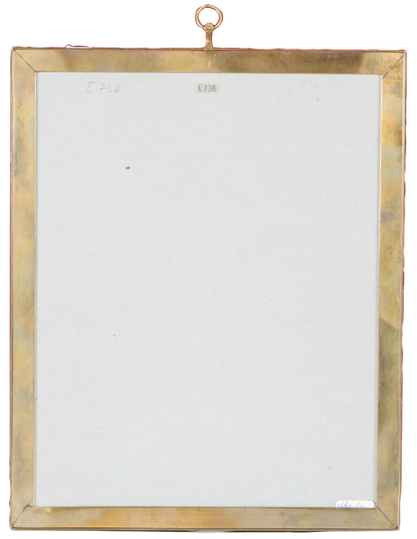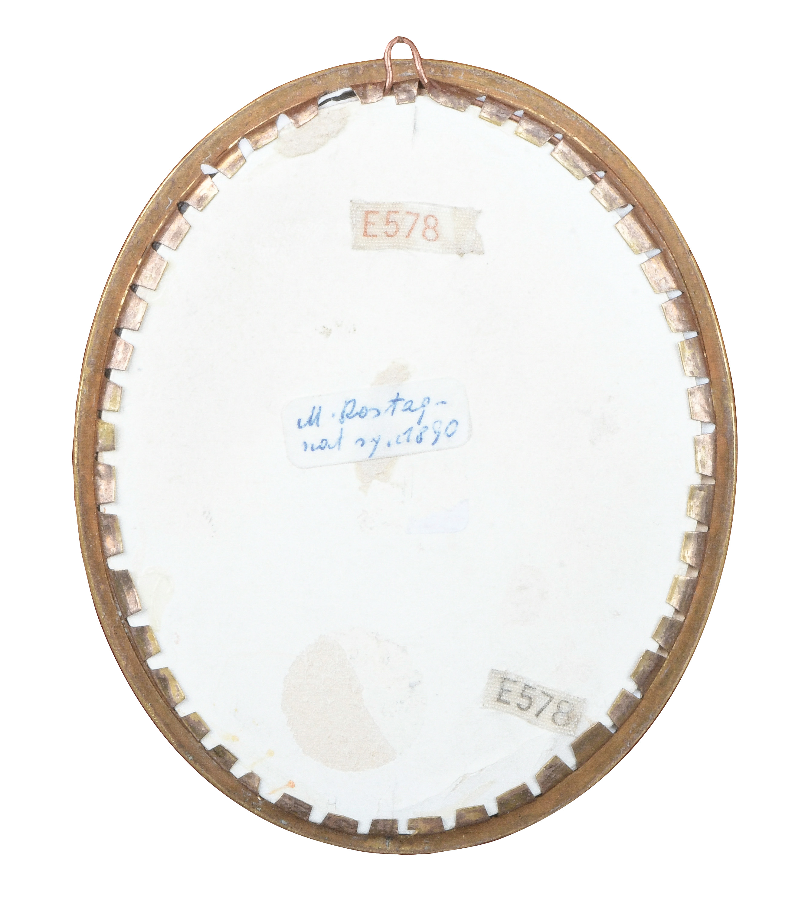 Porträt der Fürstin von Dietrichstein. Bunt gemalt in Puderfarben und aquarelliert auf Elfenbeinplatte, sign., hi./Gl. in aufwendigem, vergoldetem Messingrahmen mit Reliefkranz. Provenienz: Galerie Koller, Zürich 1986. Elfenbein-Gutachten und EU-Verkaufsgenehmigung liegen vor und können für EUR 150,00 erworben werden.
