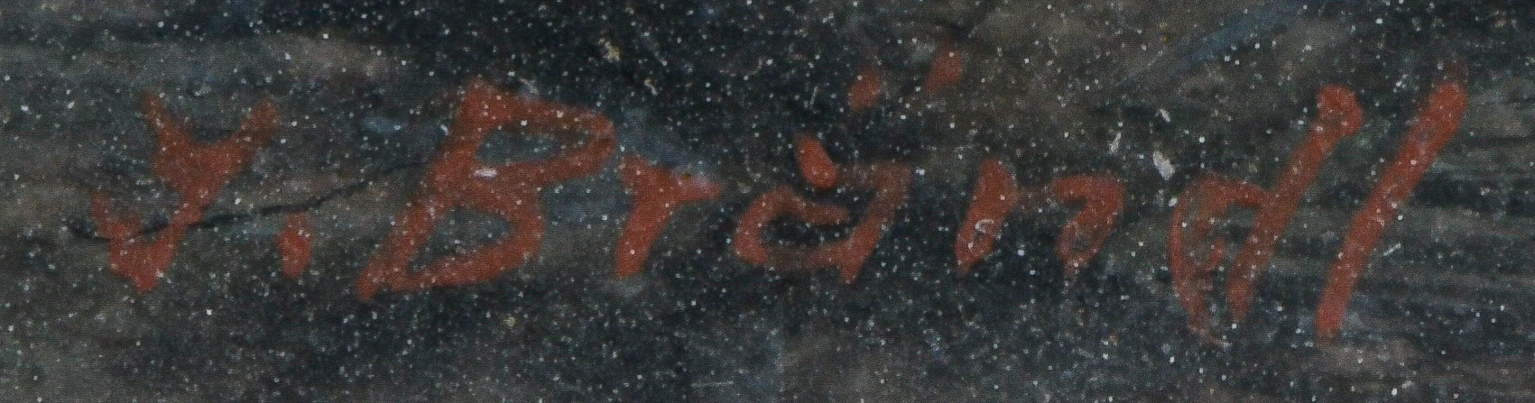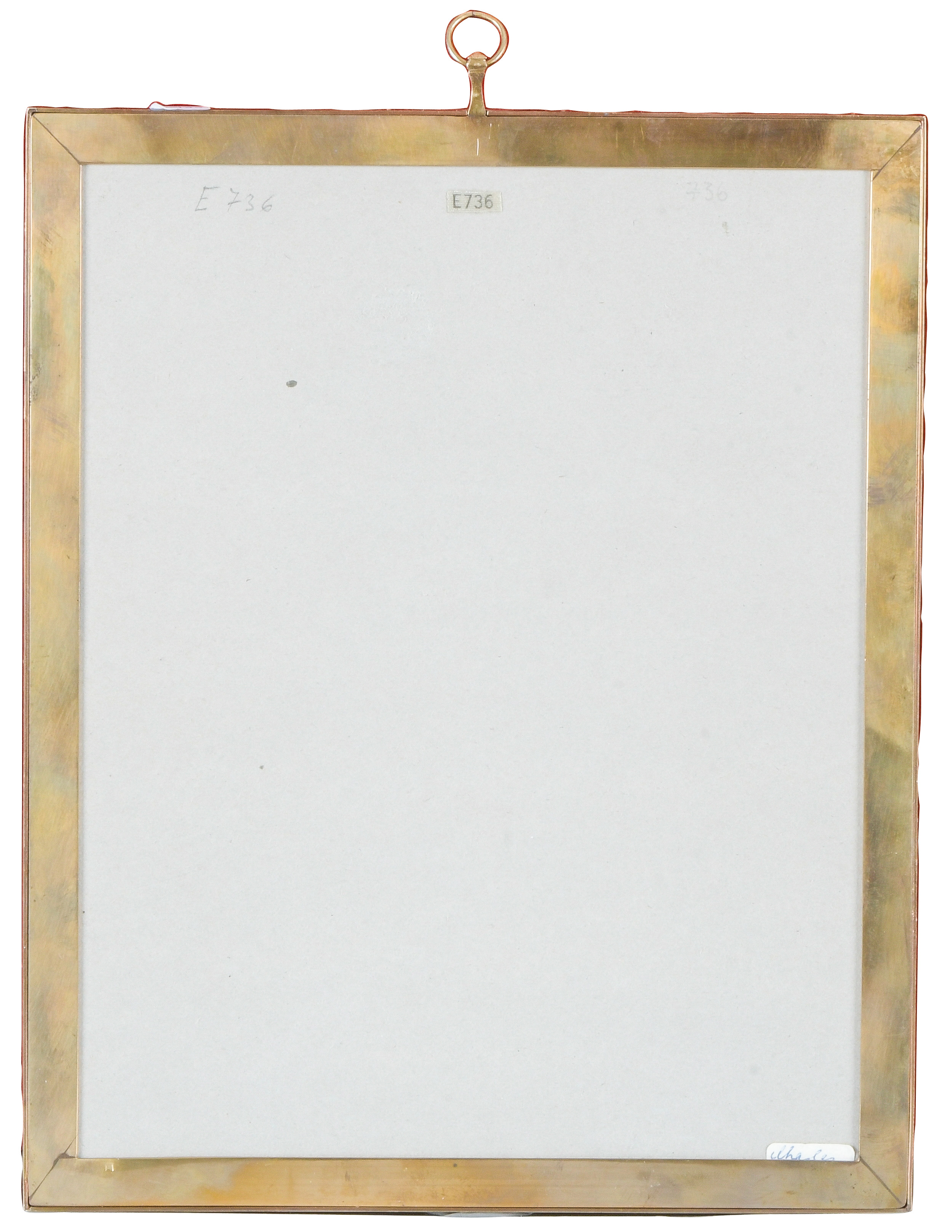 Porträt einer Dame. Bunt gemalt in Puderfarben und aquarelliert auf Elfenbeinplatte, li./mittig/sign., hi./Gl. in fein reliefiertem, teilw. ziseliertem Messingrahmen. Provenienz: Antiquitäten Gertrud Rudigier, München 1981. Elfenbein-Gutachten und EU-Verkaufsgenehmigung liegen vor und können für EUR 150,00 erworben werden.