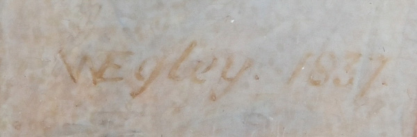 Porträt eines Mädchens mit Bilderbuch. Bunt gemalt in Puderfarben und aquarelliert auf Elfenbeinplatte, li./mittig/sign./dat. 1837, mit Passepartout hi./Gl. gerahmt. Provenienz: Sotheby's, London 25. Nov. 1979. Elfenbein-Gutachten und EU-Verkaufsgenehmigung liegen vor und können für EUR 150,00 erworben werden.