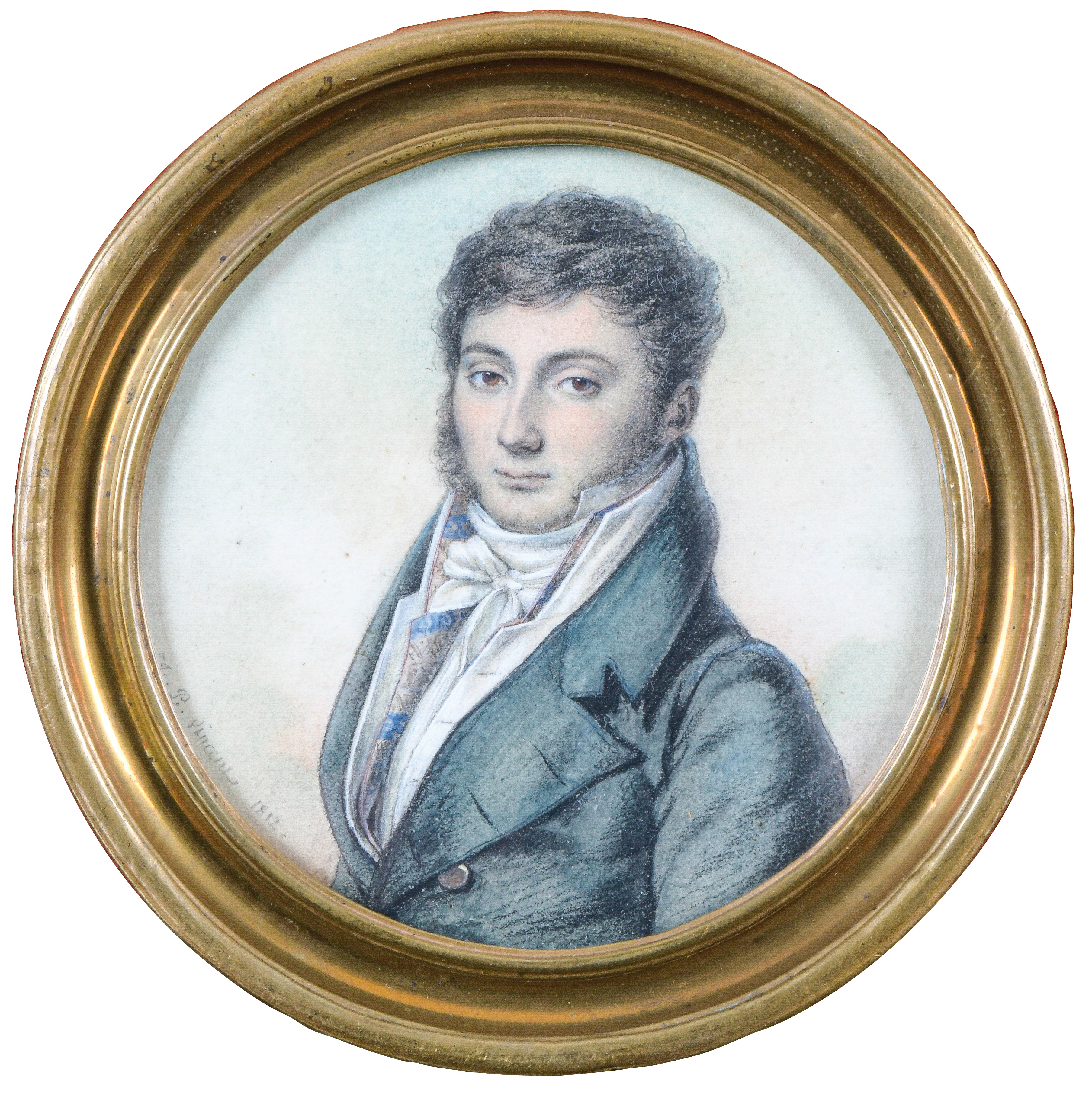 Porträt eines Herren. Bunt aquarelliert auf Papier, li./u./sign./dat. 1812, hi./Gl. gerahmt. Provenienz: Antiquitäten Gertrud Rudigier, München 1982.