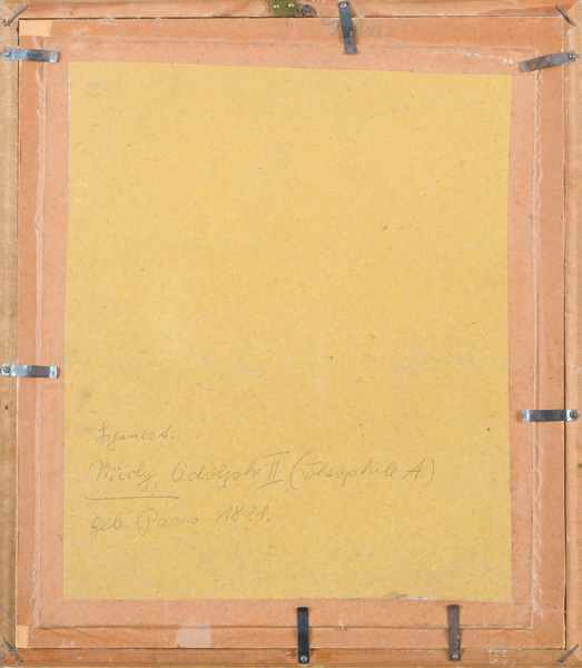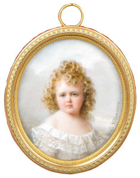 Porträt der Antoinette de Rochechouart de Mortemart (1893-1972). Bunt gemalt in Puderfarben und aquarelliert auf Elfenbeinplatte, re./mittig/sign., hi./Gl. in prunkvollem, feuervergoldetem Bronzerahmen. Provenienz: Christie's, London 2005, GBP 13.500,00. Elfenbein-Gutachten und EU-Verkaufsgenehmigung liegen vor und können für EUR 150,00 erworben werden.