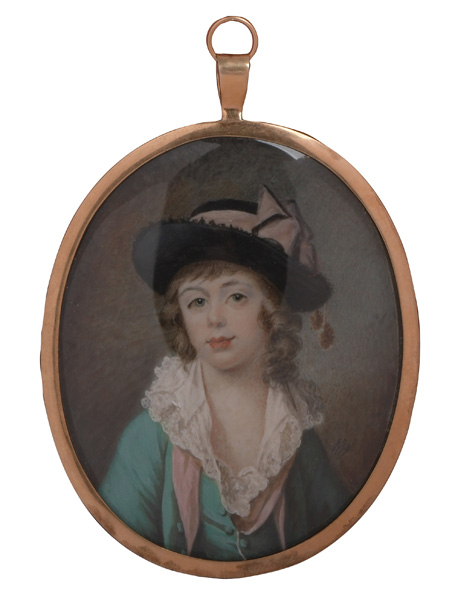 Porträt eines Knaben mit Hut. Bunt gemalt in Puderfarben und aquarelliert auf Elfenbeinplatte, re./mittig/monogr./dat. 1779, hi./Gl. in schlichtem, vergoldetem Silberrahmen, verso verglaste Rückplatte. Provenienz: Christie's, London 9. Dez. 2003 für GBP 36.000,00. Elfenbein-Gutachten und EU-Verkaufsgenehmigung liegen vor und können für EUR 150,00 erworben werden.