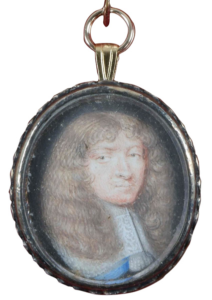 Porträt von Henri Charles II, Herzog von La Tremoullie (1620-1662). Bunt gemalt in Puderfarben und aquarelliert auf Pergament, hi./Gl. in vergoldetem Rahmen. Provenienz: Sotheby's, 30. Juni 1980.