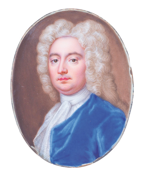 Herrenporträt. Bunt gemalt in Email auf Kupferplatte. Provenienz: Erworben bei D.S. Lavender Antiques, 2004.