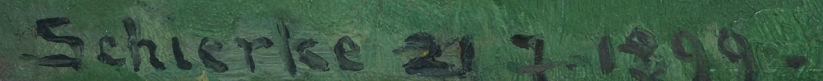 - Katalog-Nr: 1176Schierke / C. Parseval (Maler des 19. Jhs.). Waldlichtung und Gebäude mit Wisteriabewuchs. Öl/Lw., eines aufgezogen, li./u./sign., eines dat. 1899, gerahmt, 49,5 x 43,5 / 64,5 x 48 cm.o.L.
