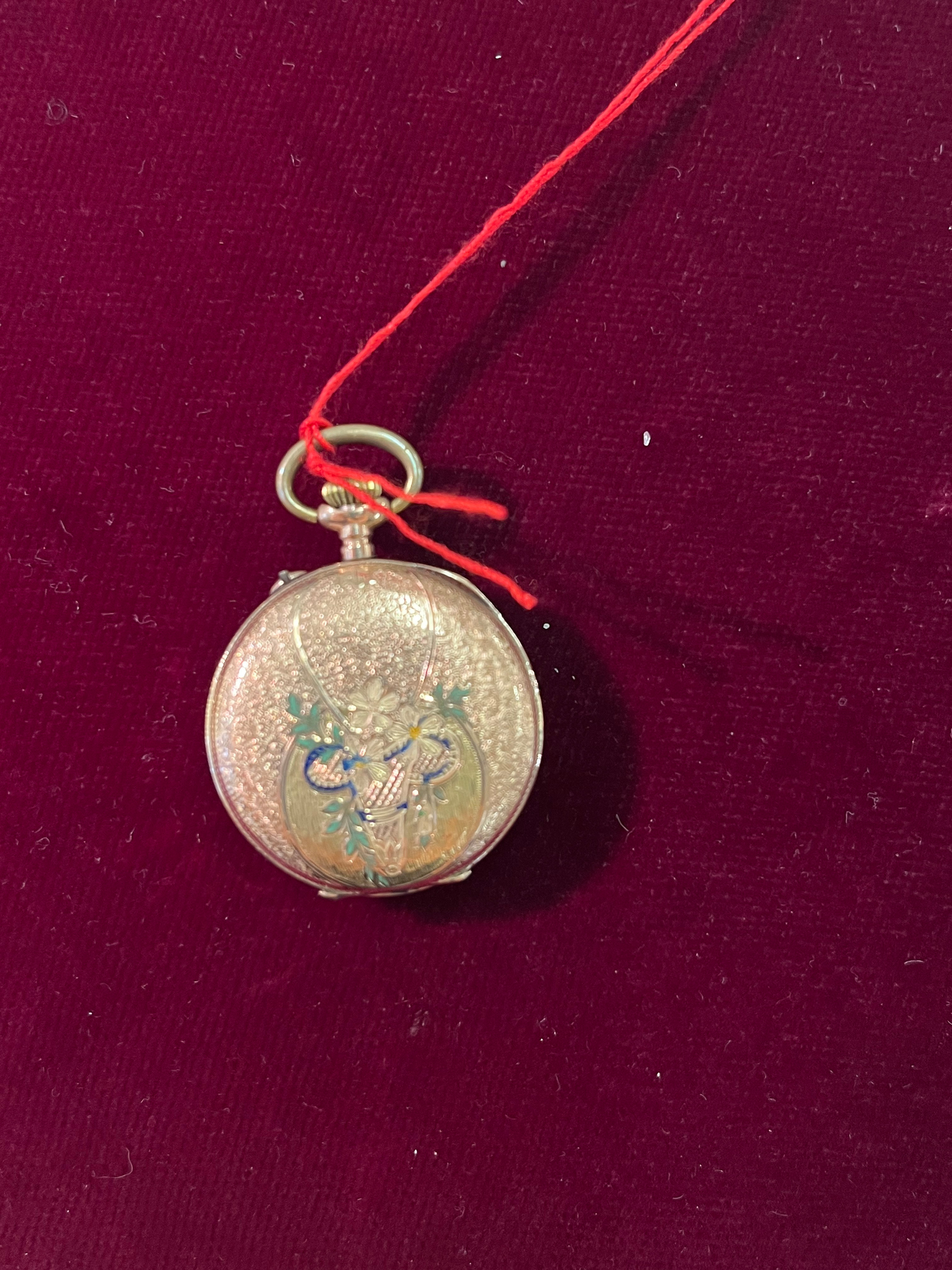- Katalog-Nr: 1181Damentaschenuhr mit zwei 14 kt Golddeckeln. (Funktion ungeprüft)o.L.