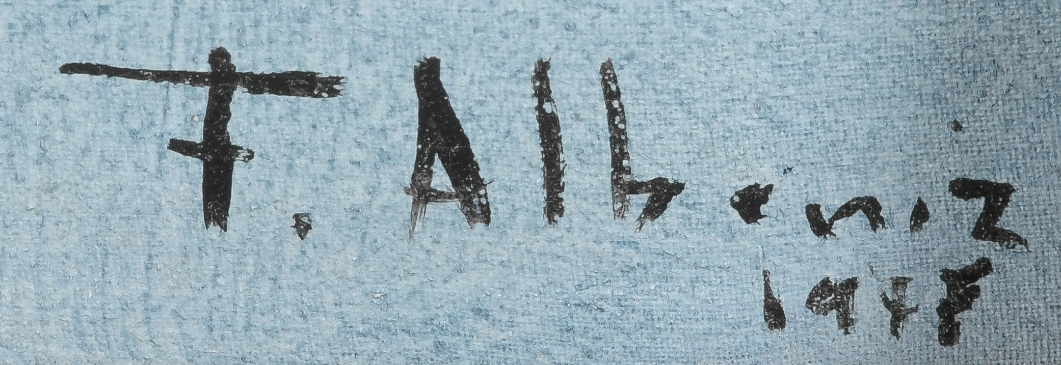 - Katalog-Nr: 1186Fernando Alzamora Albeniz (*1927). Drei Frauen und abstrahierte Vögel. Öl/Lw., eines aufgezogen, re./u./sign./dat. 1977 bzw. 1979, je gerahmt, 70 x 50 cm.o.L.