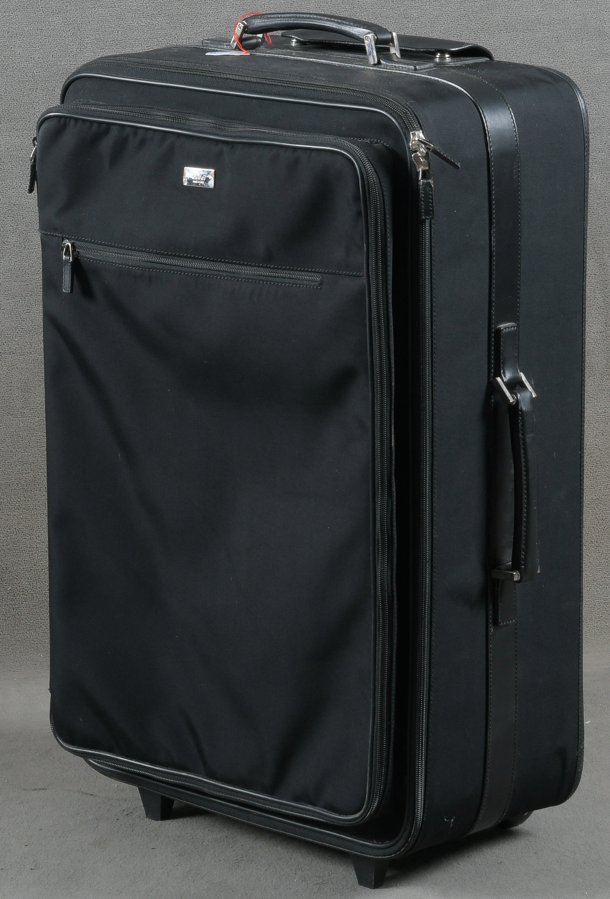 - Katalog-Nr: 1188„Gucci“-Reisekoffer auf Rollen, Nr. „0120504“, Stoff / Leder, H=75 cm, B=43 cm, T=27 cm. (besch.)o.L.