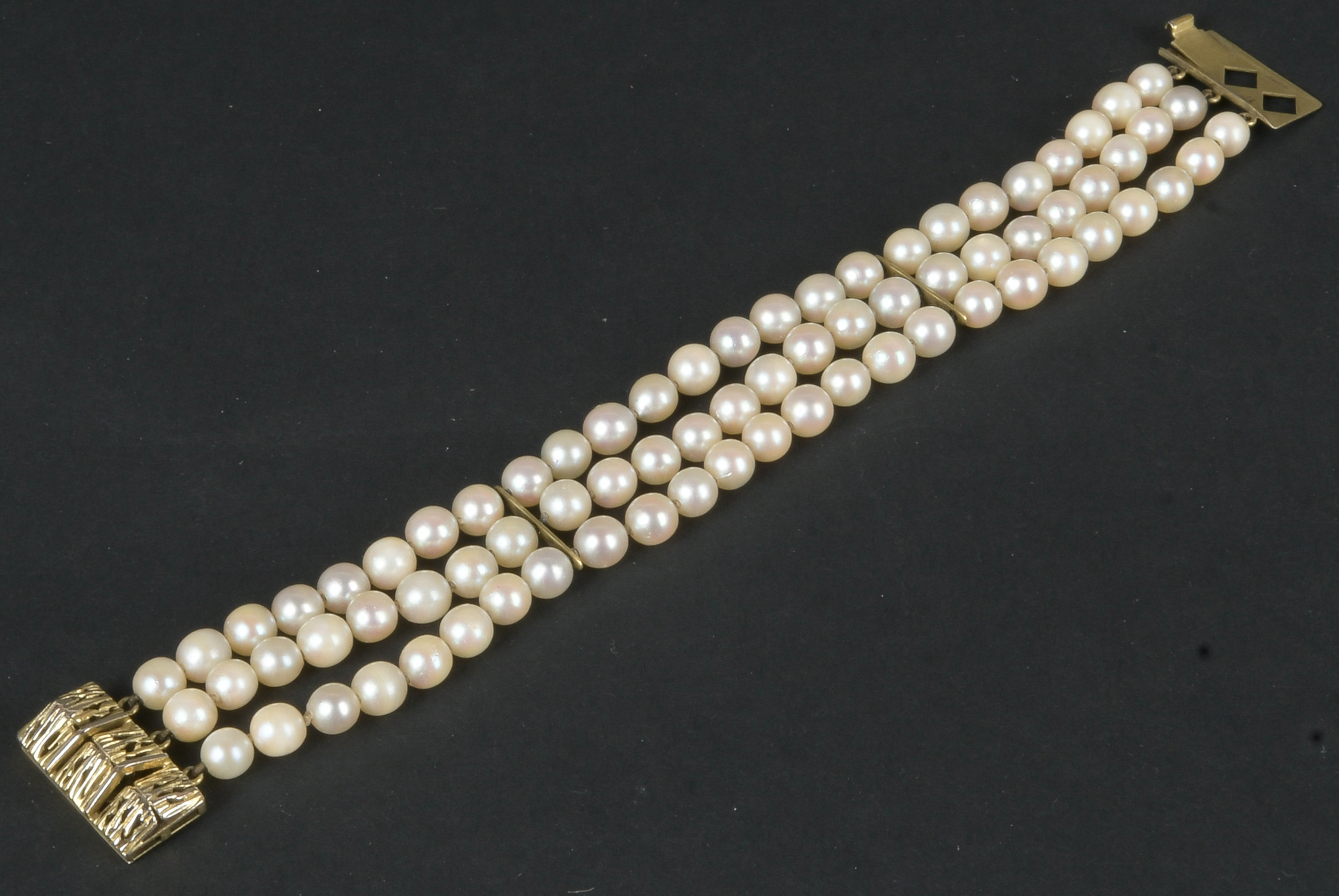 - Katalog-Nr: 1191Dreireihiges Perlenarmand mit 14 kt Goldverschluss.o.L.