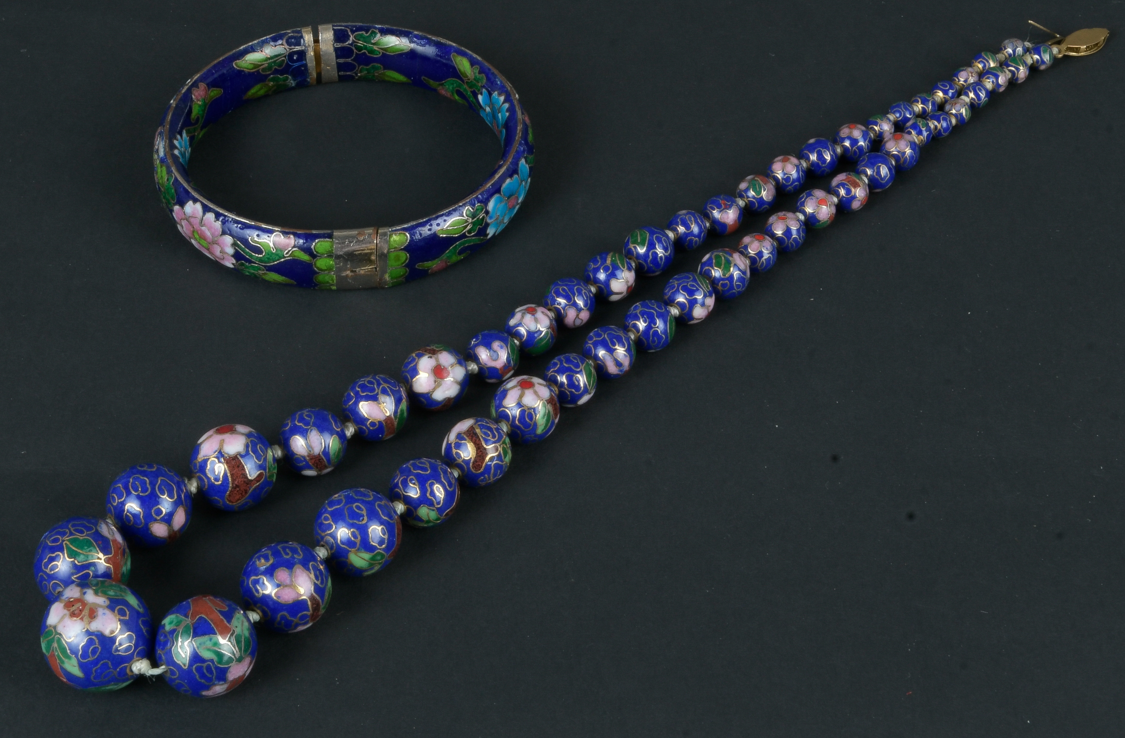 - Katalog-Nr: 1195Armreif und Perlenhalskette, je bunt emailliert, L=55 cm.o.L.