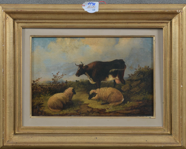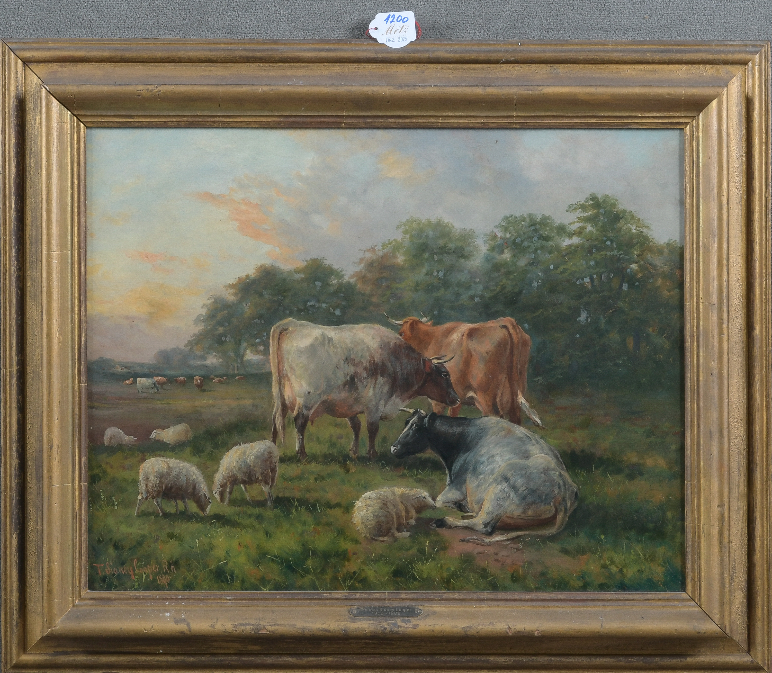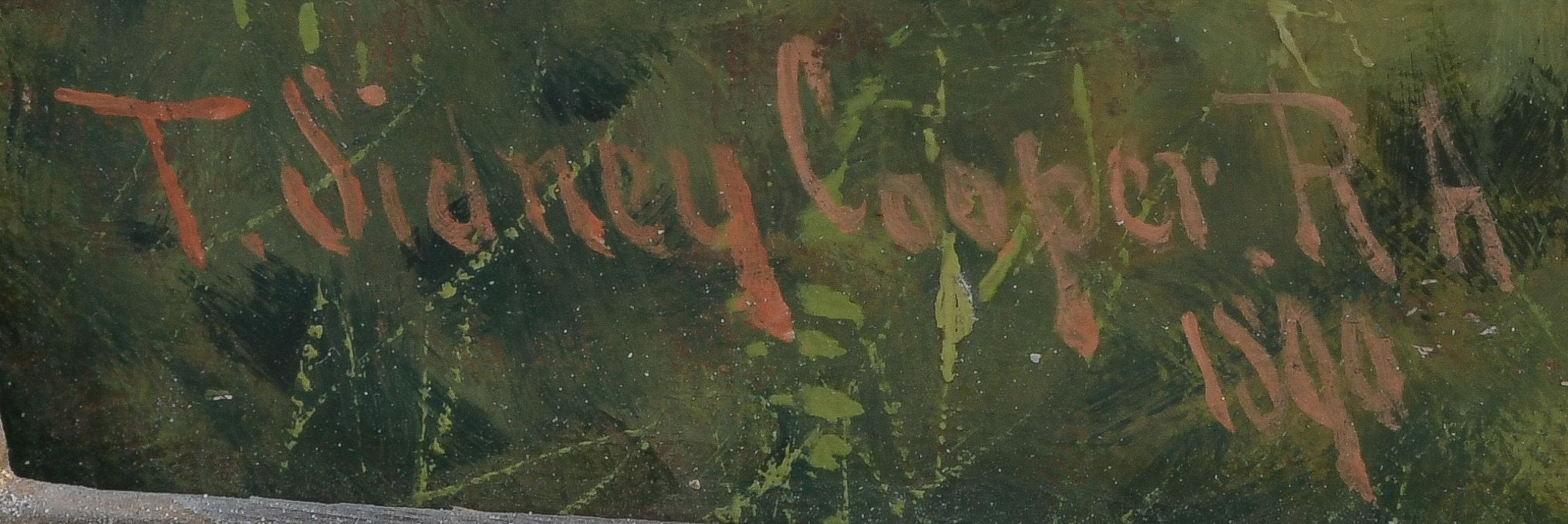 - Katalog-Nr: 1200Thomas Sidney Cooper (1803-1902). Kühe und Schafe auf Wiese mit Baumbestand. Öl/Lw., li./u./sign./dat. 1890, gerahmt, 41 x 50,5 cm.o.L.