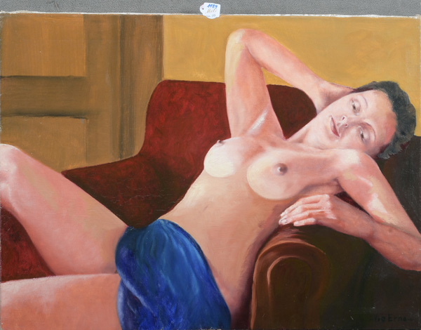 - Katalog-Nr: 1189V. Erna (Maler des 20. Jhs.). Liegender weiblicher Halbakt. Öl/Lw., re./u./sign., 61 x 80 cm.o.L.