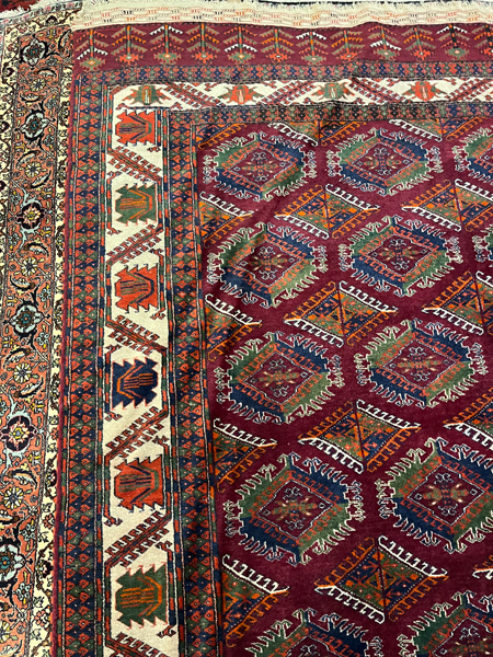 - Katalog-Nr: 2633Jomud-Teppich, 340 x 224 cm. (besch.)o.L.