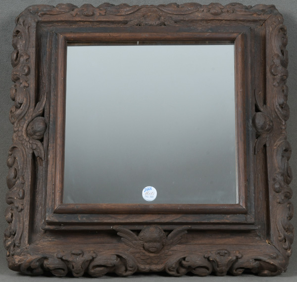 - Katalog-Nr: 2666Barock-Rahmen. Spanien 17. Jh. Massiv Eiche, geschnitzt mit Blättern, Cherubinen und Rocaillen; mit Hohlkehlprofilen, 63 x 62 cm. (mit Ergänzungen)o.L.