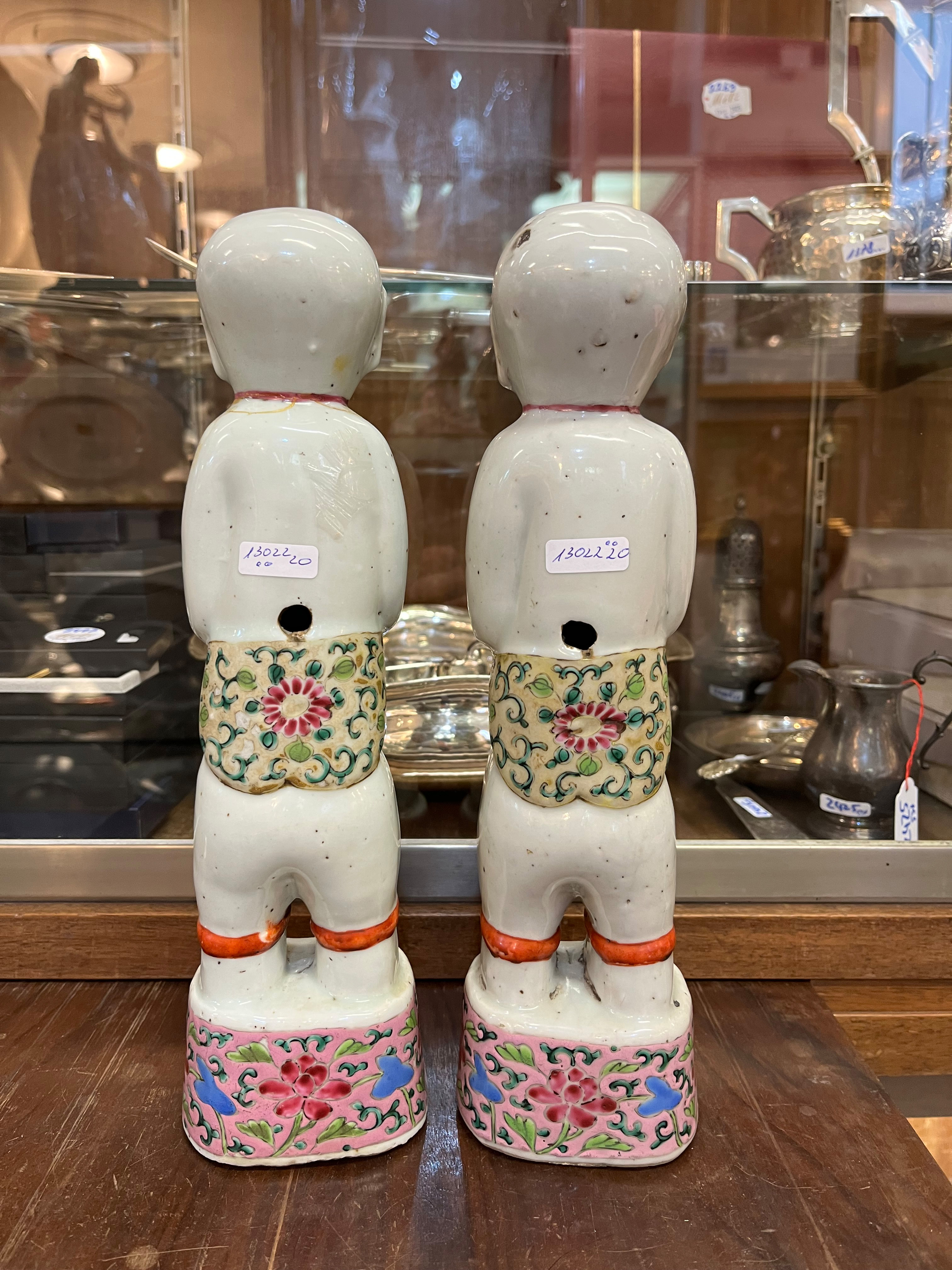 - Katalog-Nr: 291Paar Knabenfiguren. Asien. Porzellan, bunt bemalt; ohne Marke, je H=31 cm.o.L.