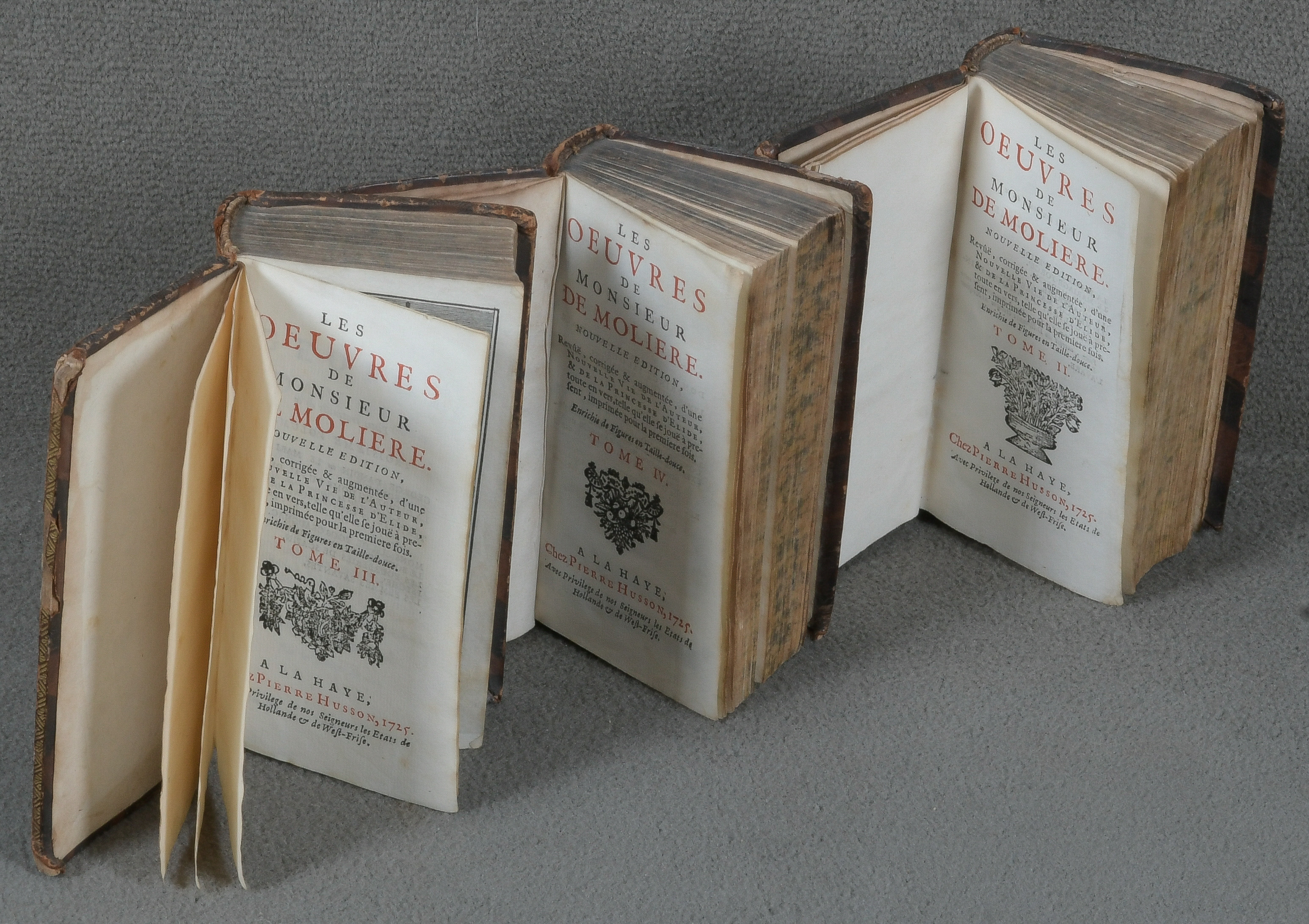 - Katalog-Nr: 292„Les Oeuvres de Monsieur de Molière“, drei Bde., A la Haye 1725.o.L.
