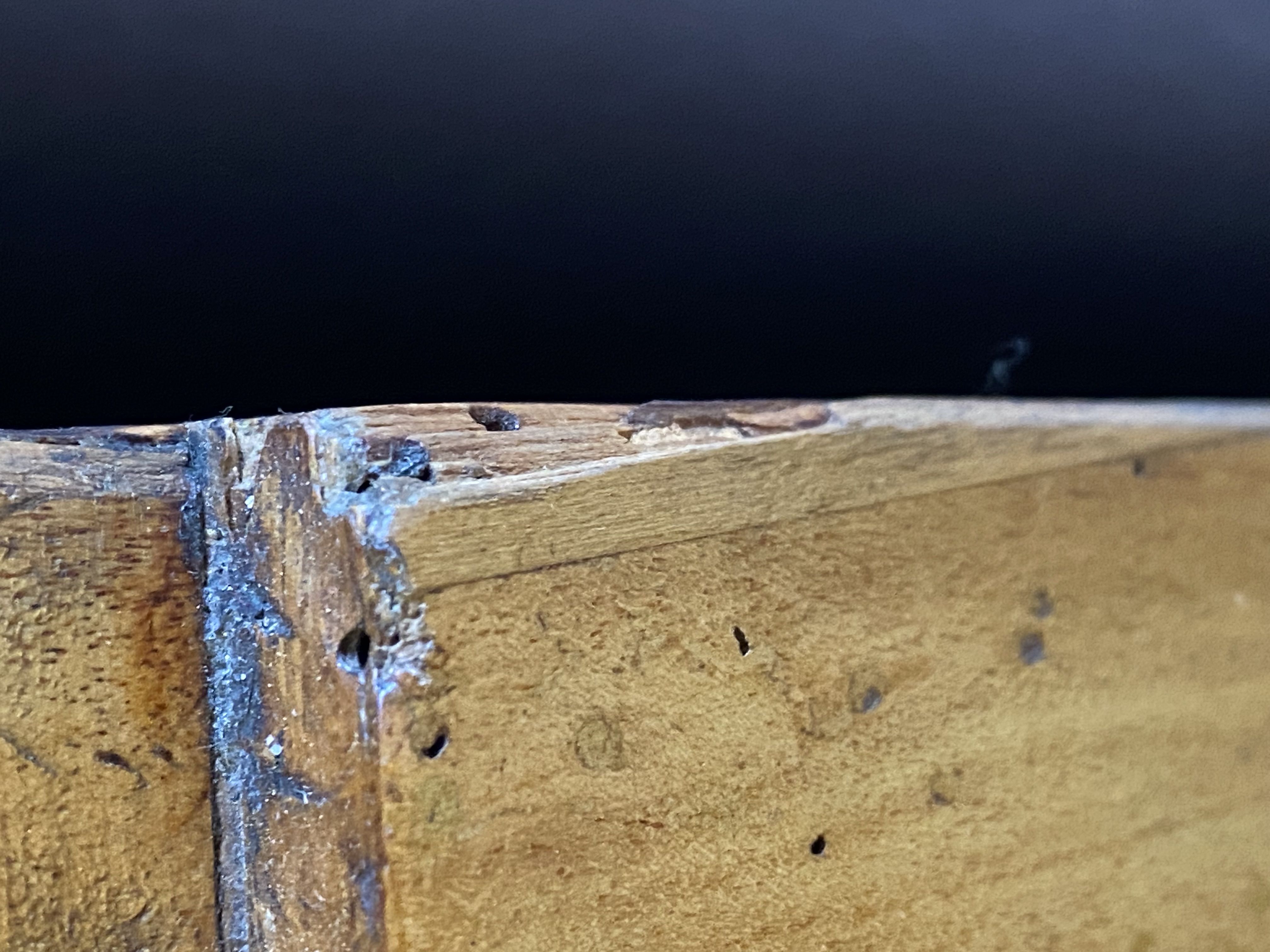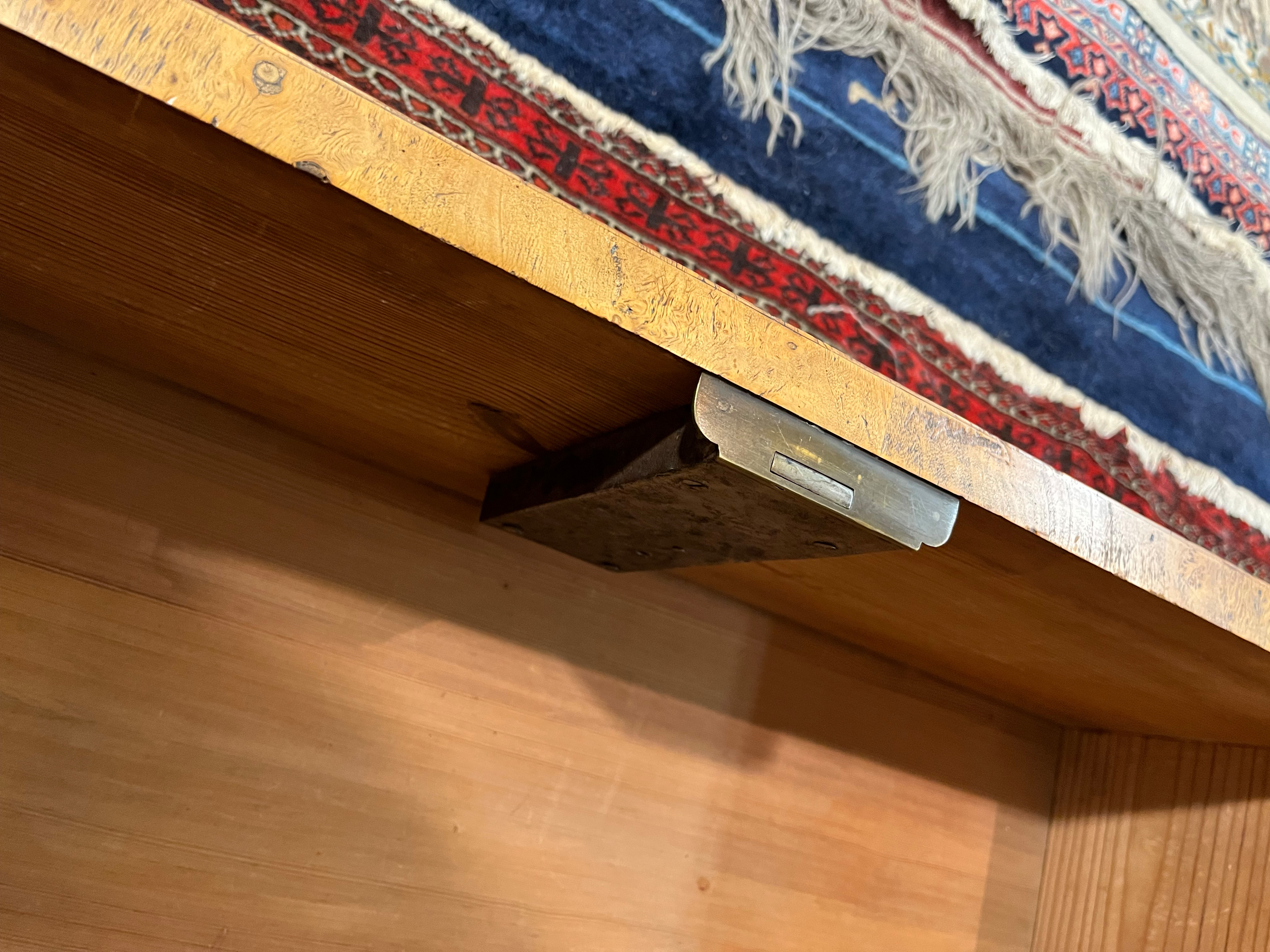 - Katalog-Nr: 288Kommode. Asien. Massivholz, teilw. in Füllung gearbeitet, mit Metallbeschlägen; leicht gebogene Füße und Zarge, eintürig mit vier Schüben und zwei Türen, überstehende Platte, H=86,5 cm, B=101 cm, T=46,5 cm. (besch.)o.L.