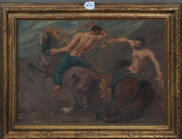 - Katalog-Nr: 451Franz Reinhardt (1881-1946). Reiterkampf. Öl/Malkarton, li./u./sign., gerahmt, 40 x 45 cm.o.L.