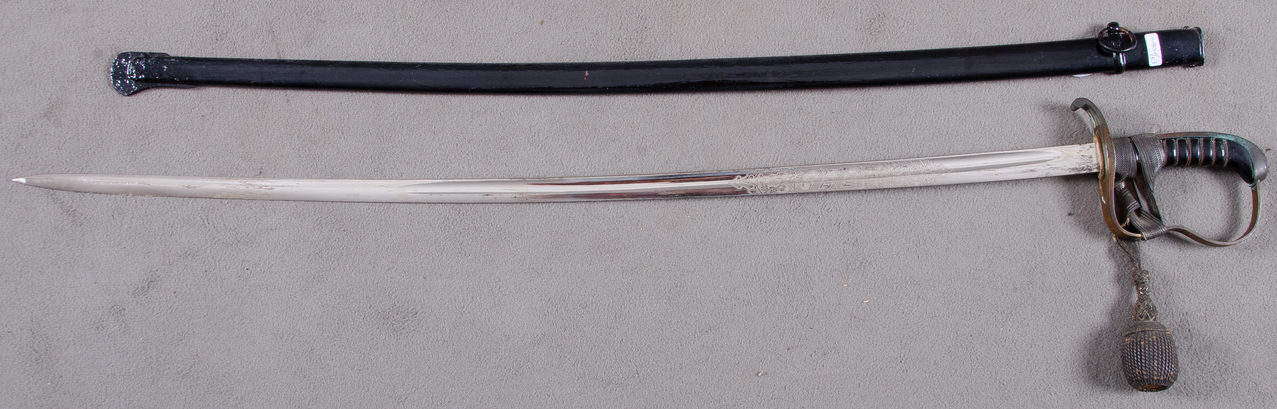 - Katalog-Nr: 629Bayerischer Infanterie-Offizierssäbel mit Portapee mit verzierter Klinge mit Wappen und „In Treue Fest“, L=83 / 97 cm.o.L.