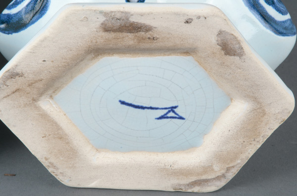 - Katalog-Nr: 650Deckelvase. Wohl Kassel 18. Jh. Fayence, unterglasurblau bemalt mit Chinoiserien; am Boden mit ligierter HL-Marke, H=32 cm. (best.)o.L.