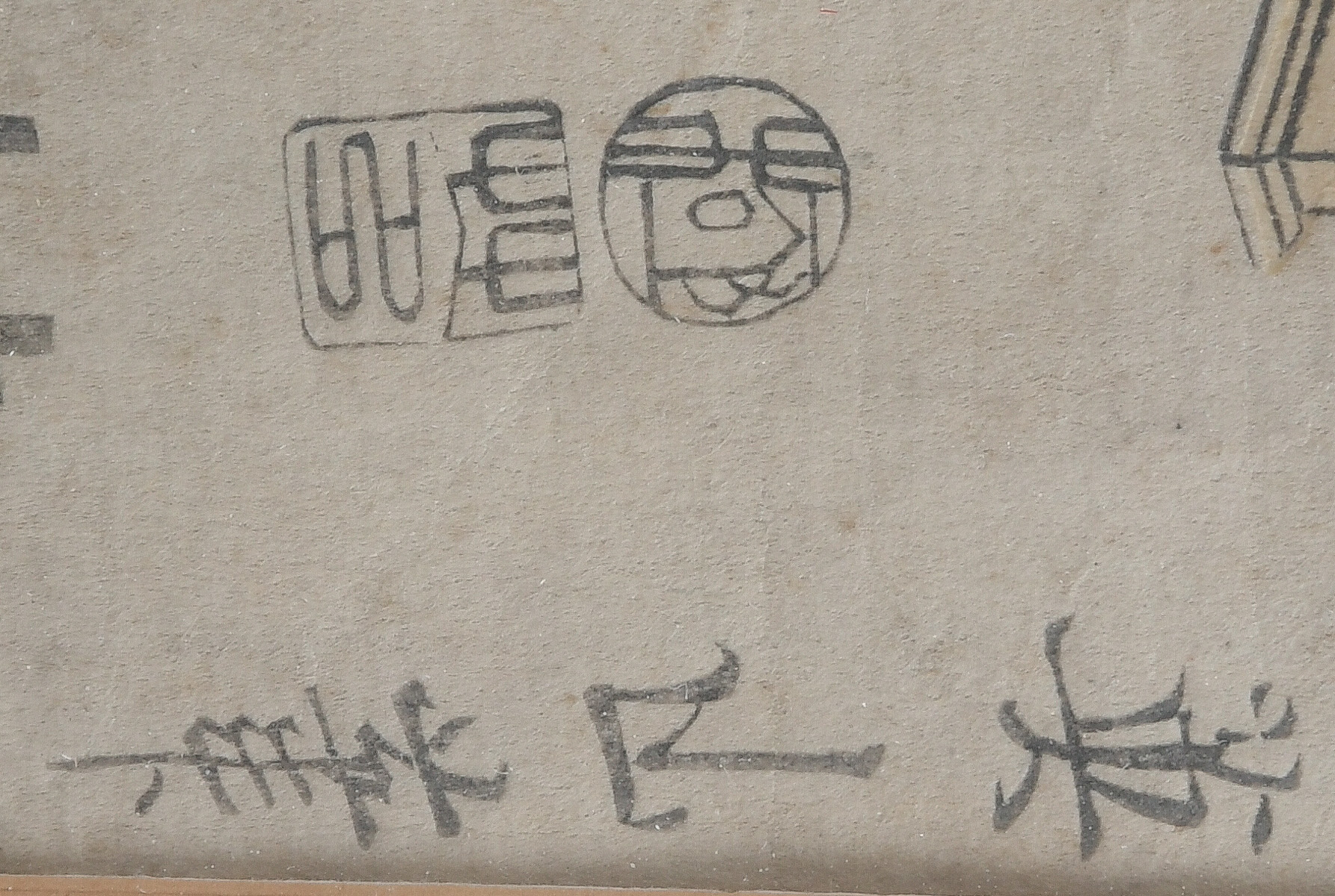 - Katalog-Nr: 706Asiatischer Graphiker des 20. Jhs. Zwei colorierte Holzschnitte mit Vögeln und Personen in Landschaft, re./u./sign.; dazu ein Seidenbild, je hi./Gl. gerahmt, 17,5 x 24,5 bis 21,5 x 38 cm.o.L.