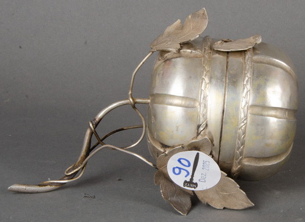 - Katalog-Nr: 90Wachsstockhalter. Wohl Leipzig, Meister Johann Christian Urban um 1770. Silber, ca. 180 g, seitl. gepunzt; in Granatapfelform mit Ast- und Blattwerk, H=11,5 cm.o.L.