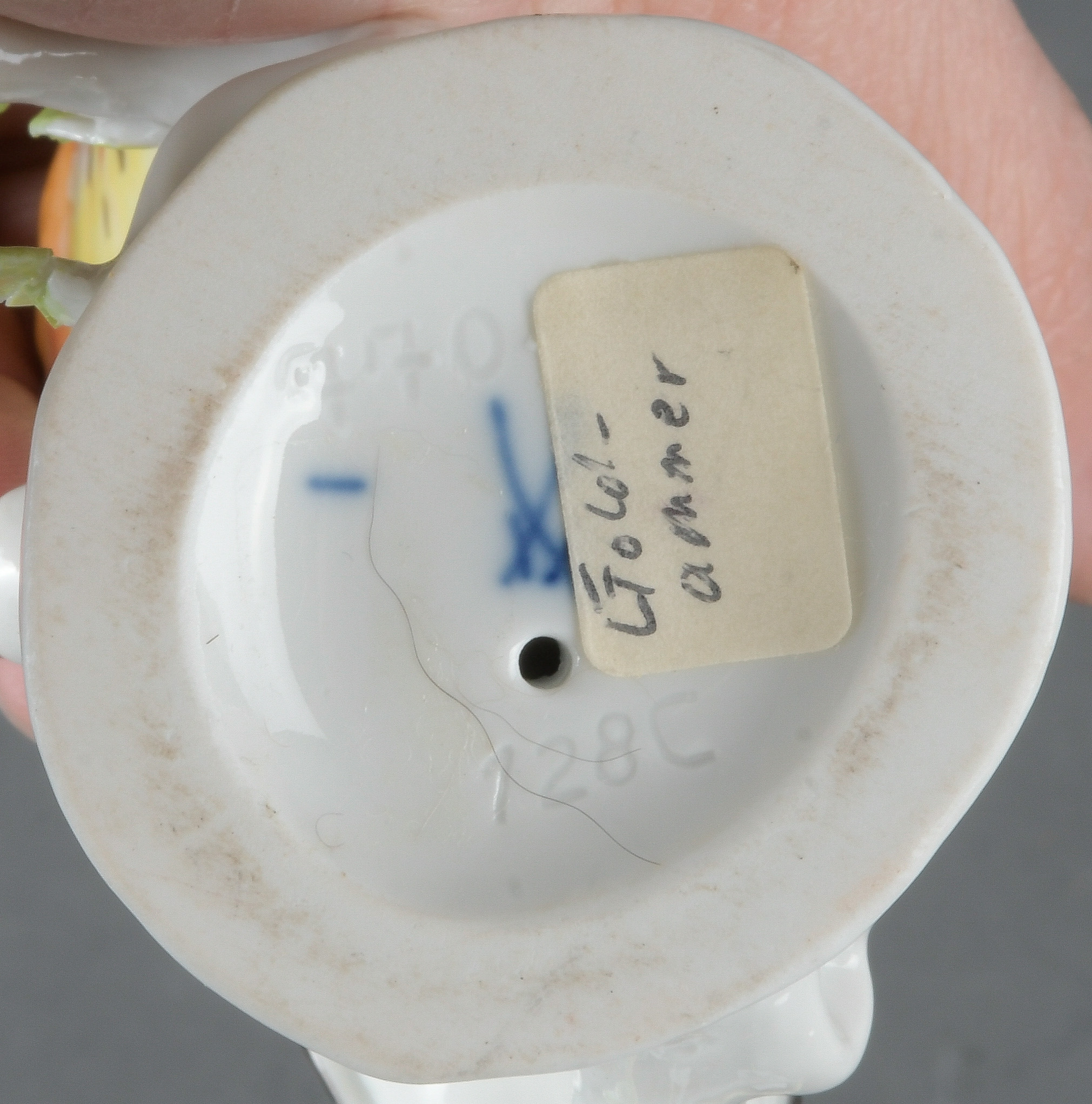 - Katalog-Nr: 802Goldammer. Meissen 20. Jh. Porzellan, naturalistisch modelliert und staffiert; am Boden unterglasurblaue Schwertermarke, Modell nach Johann Joachim Kaendler, H=13 cm.o.L.