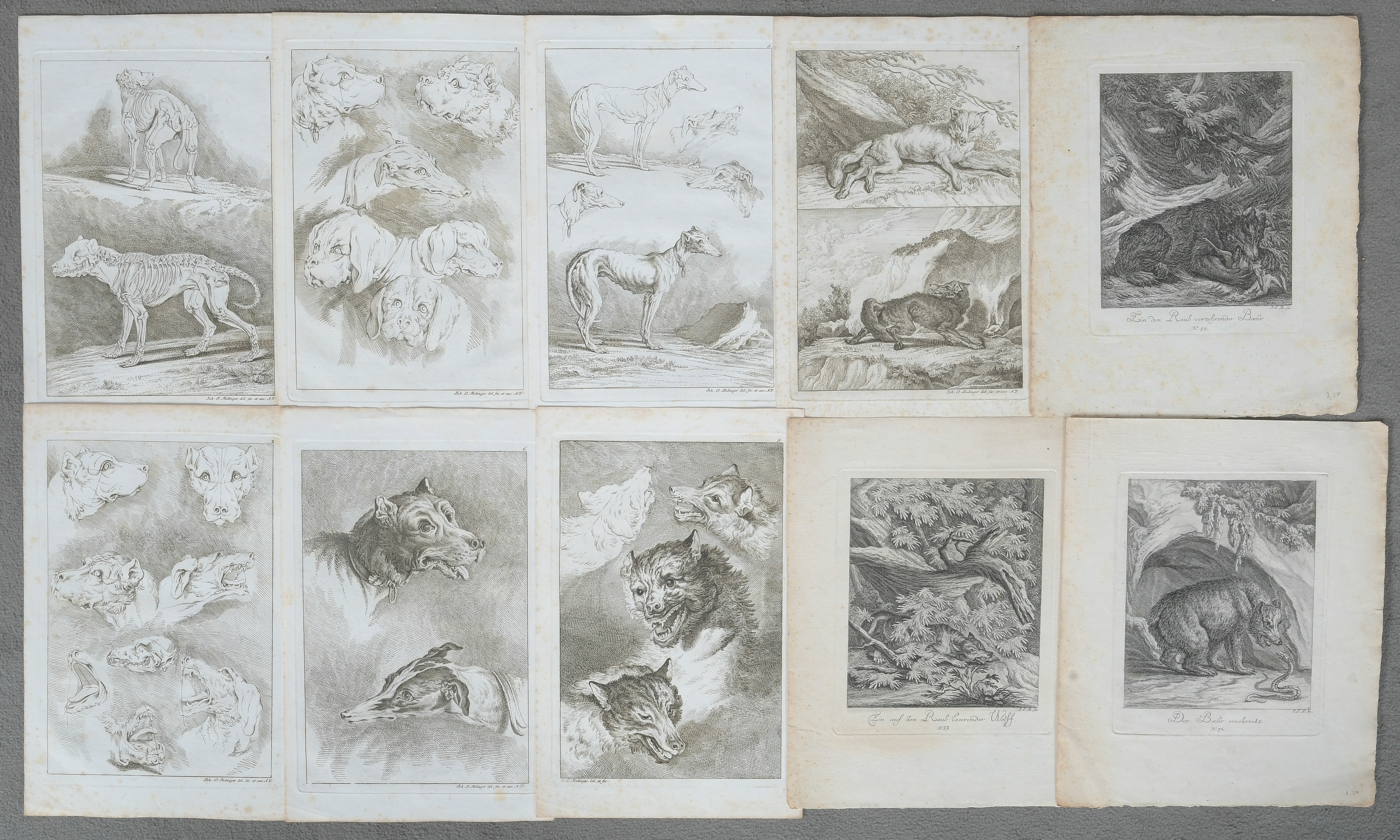 - Katalog-Nr: 824Johann Elias Ridinger (1698-1767). Zehn Kupferstiche mit Tierdarstellungen, meist Hundestudien, Wölfe und Bären, re./u./sign., 16 x 13 bis 23 x 16 cm.o.L.