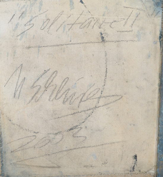 - Katalog-Nr: 818Maler des 20. Jhs. „Solitaire II“. Mixed Media, verso unleserlich sign./dat. 2003, gerahmt, 55 x 45,5 cm.o.L.