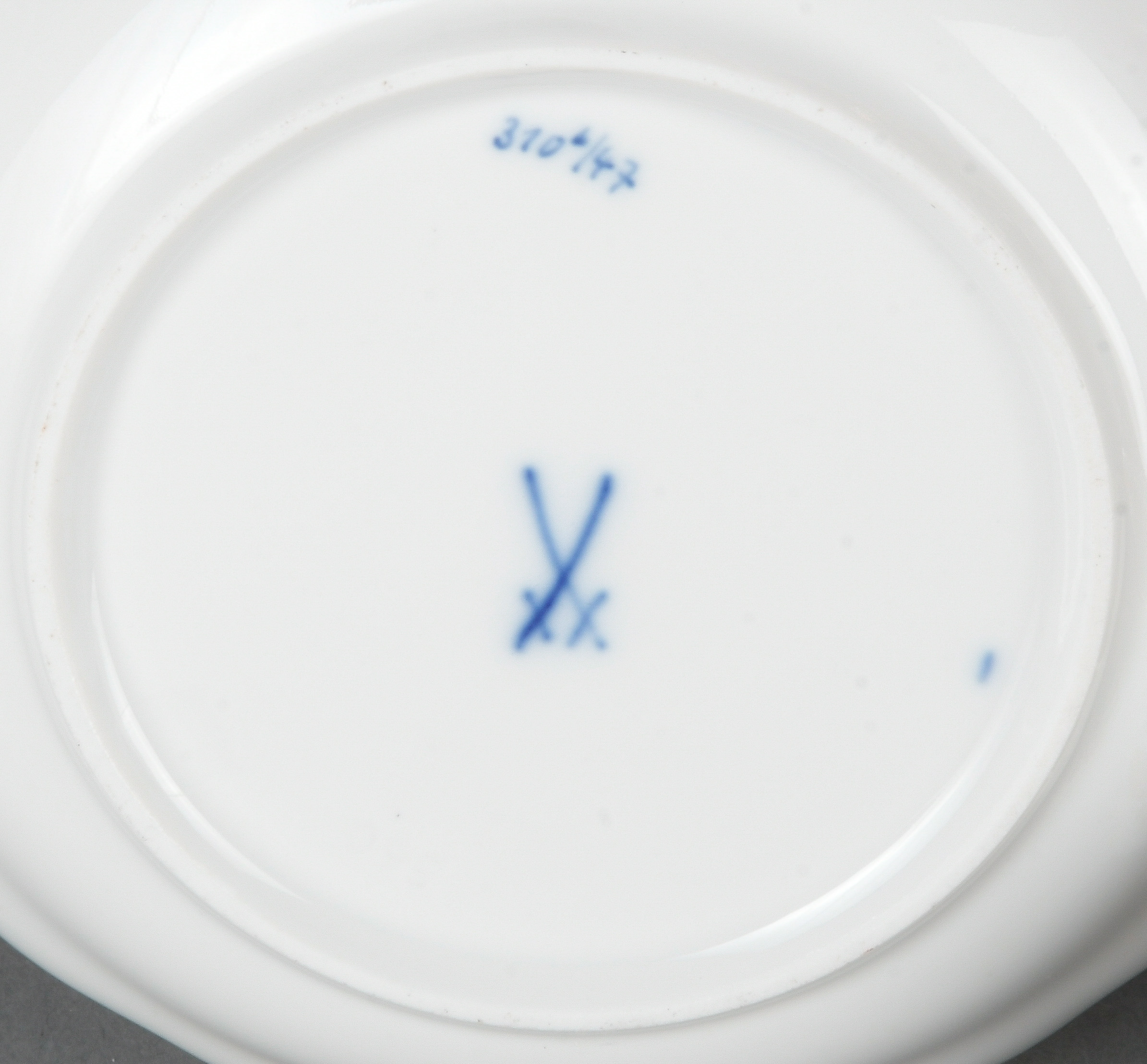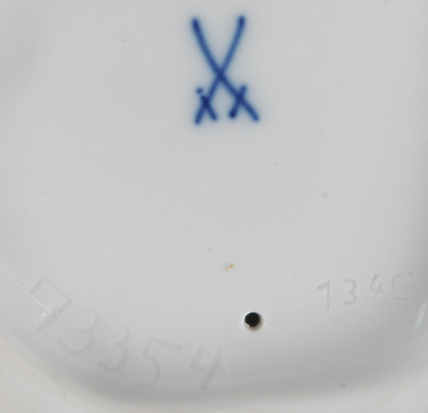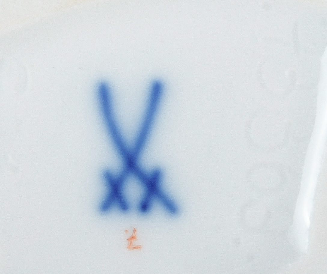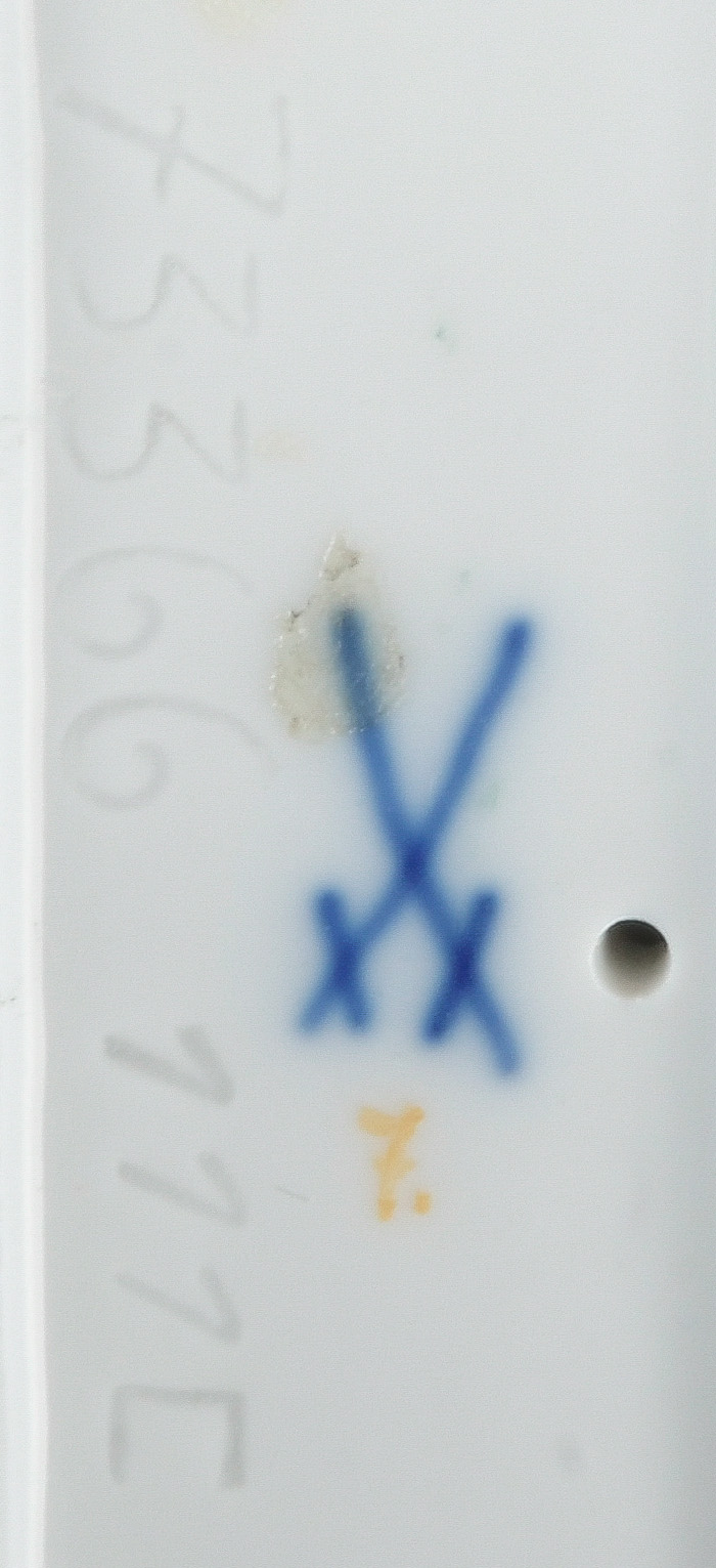 - Katalog-Nr: 855Pantoffel. Meissen 19. Jh. Porzellan, mit aufbossierten Blüten und bunt bemalt; am Boden unterglasurblaue Schwertermarke, H=5,2 cm, B=17 cm, T=5,2 cm. (nadelkopfgroß best.)o.L.