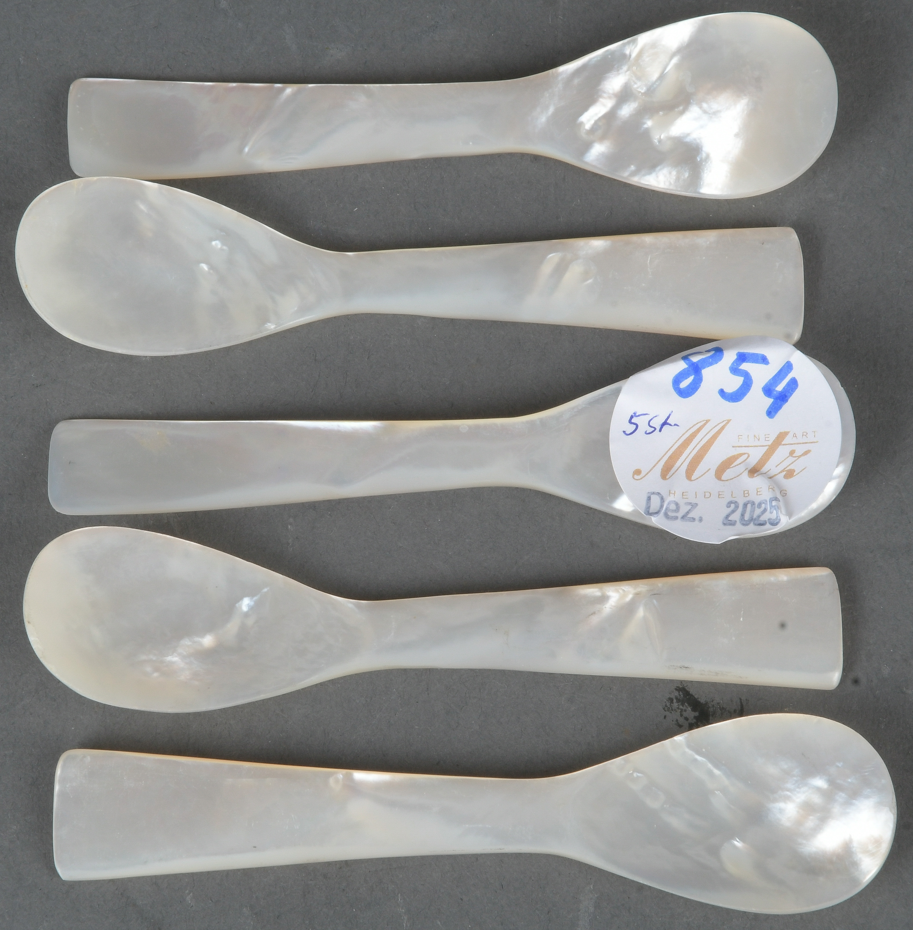 - Katalog-Nr: 854Fünf Kaviarlöffel. Perlmutt, poliert.o.L.